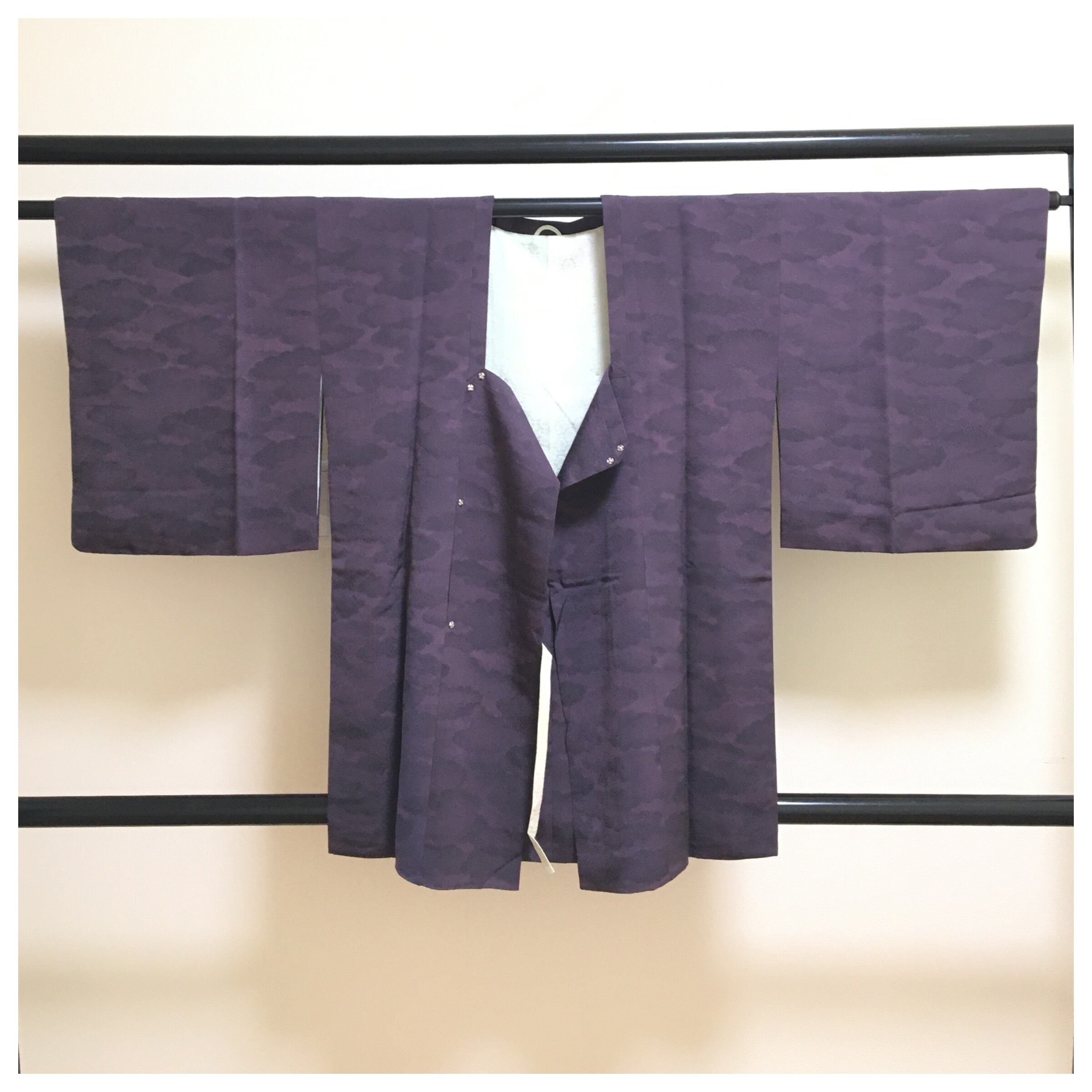 正絹 道行コート 雲取り 紫 身丈82 裄62.5 リサイクル着物 です。