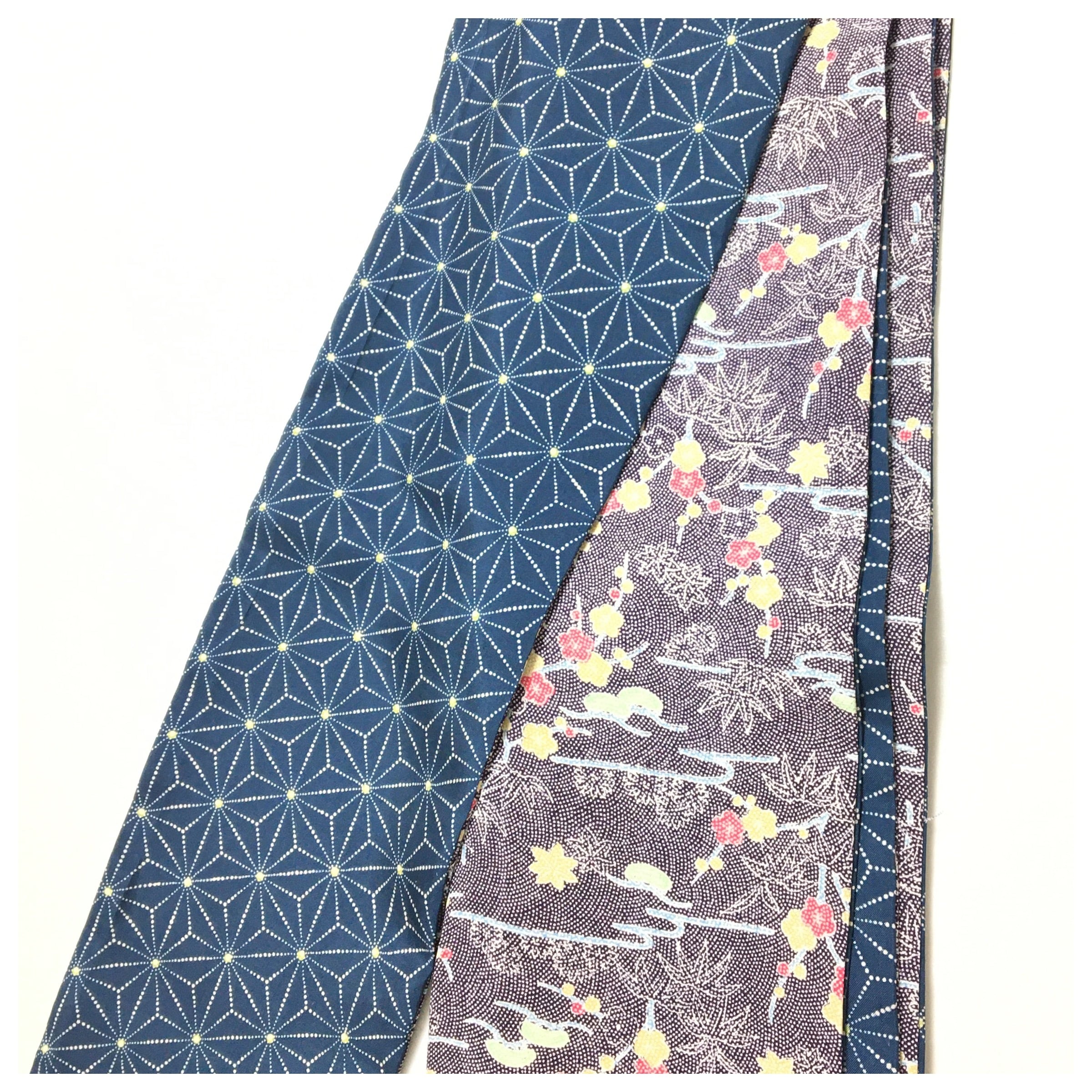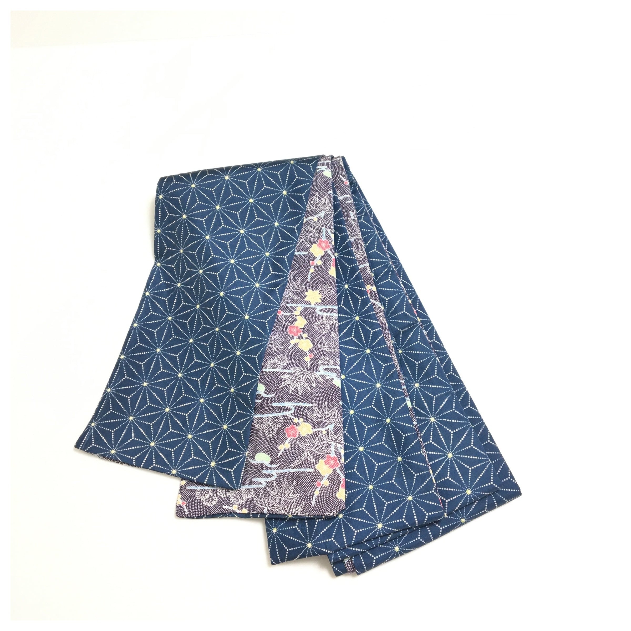 正絹 兵児帯 麻の葉 鮫小紋 両面違い 長尺540 幅14 中古品 です。