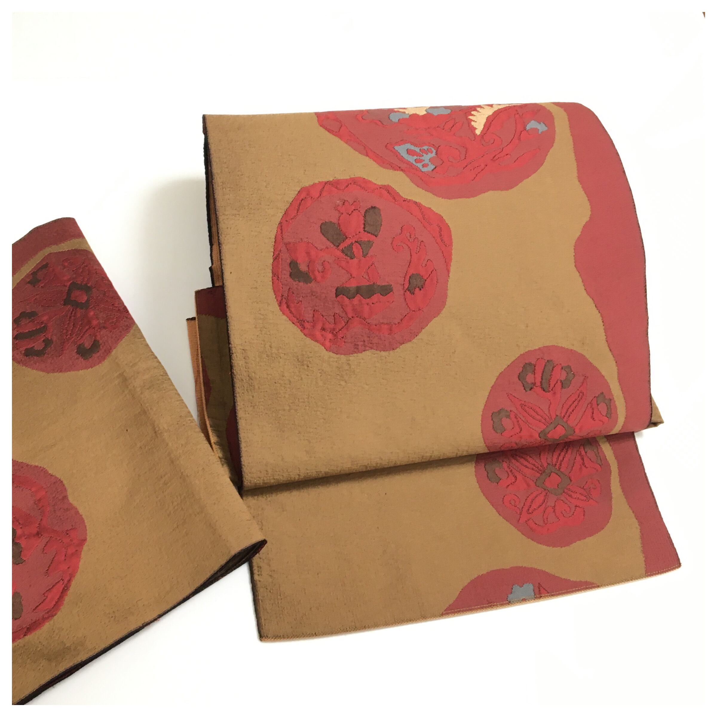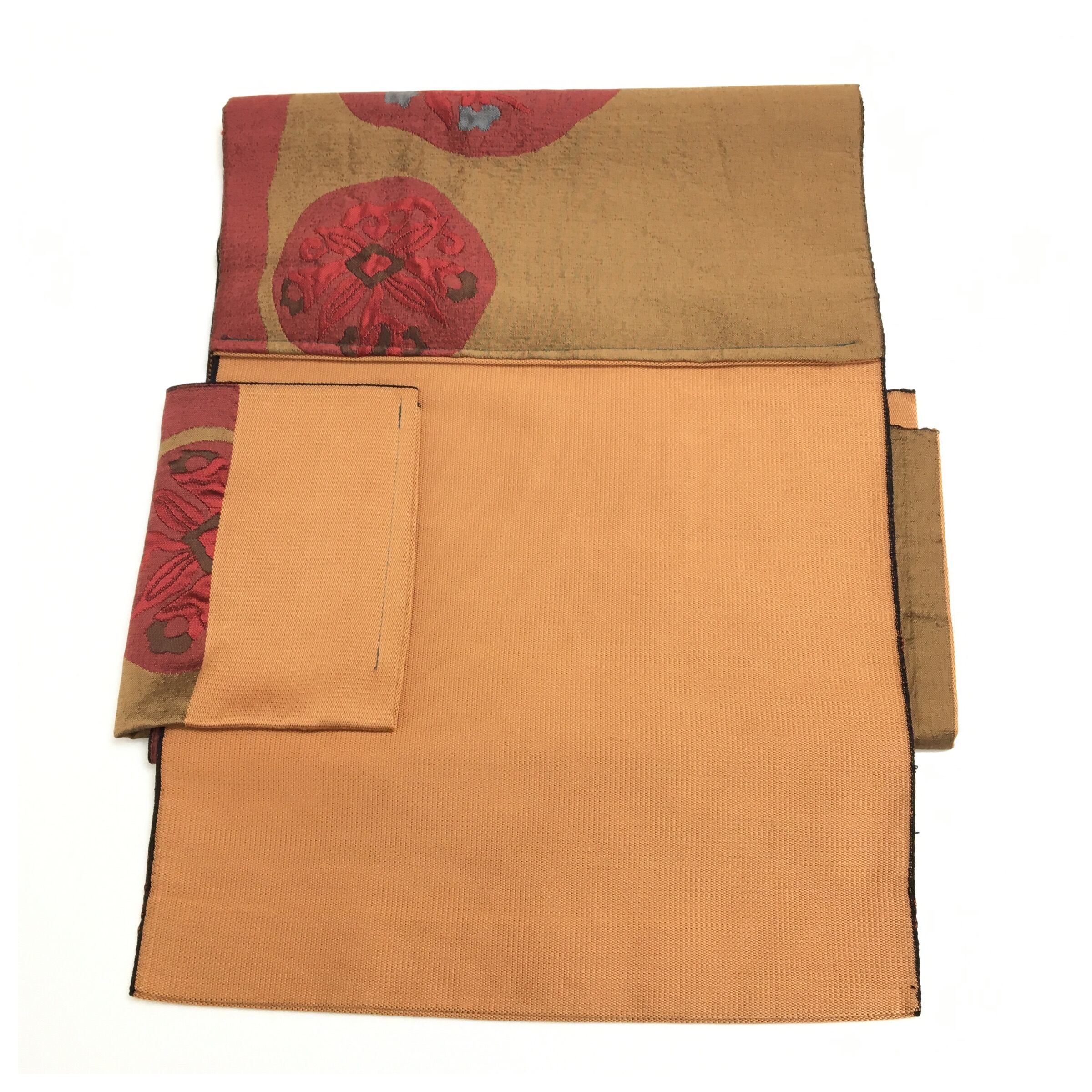 【二部式 名古屋帯】 化繊 茶 膨れ織 簡単装着 和装 中古 リサイクル品