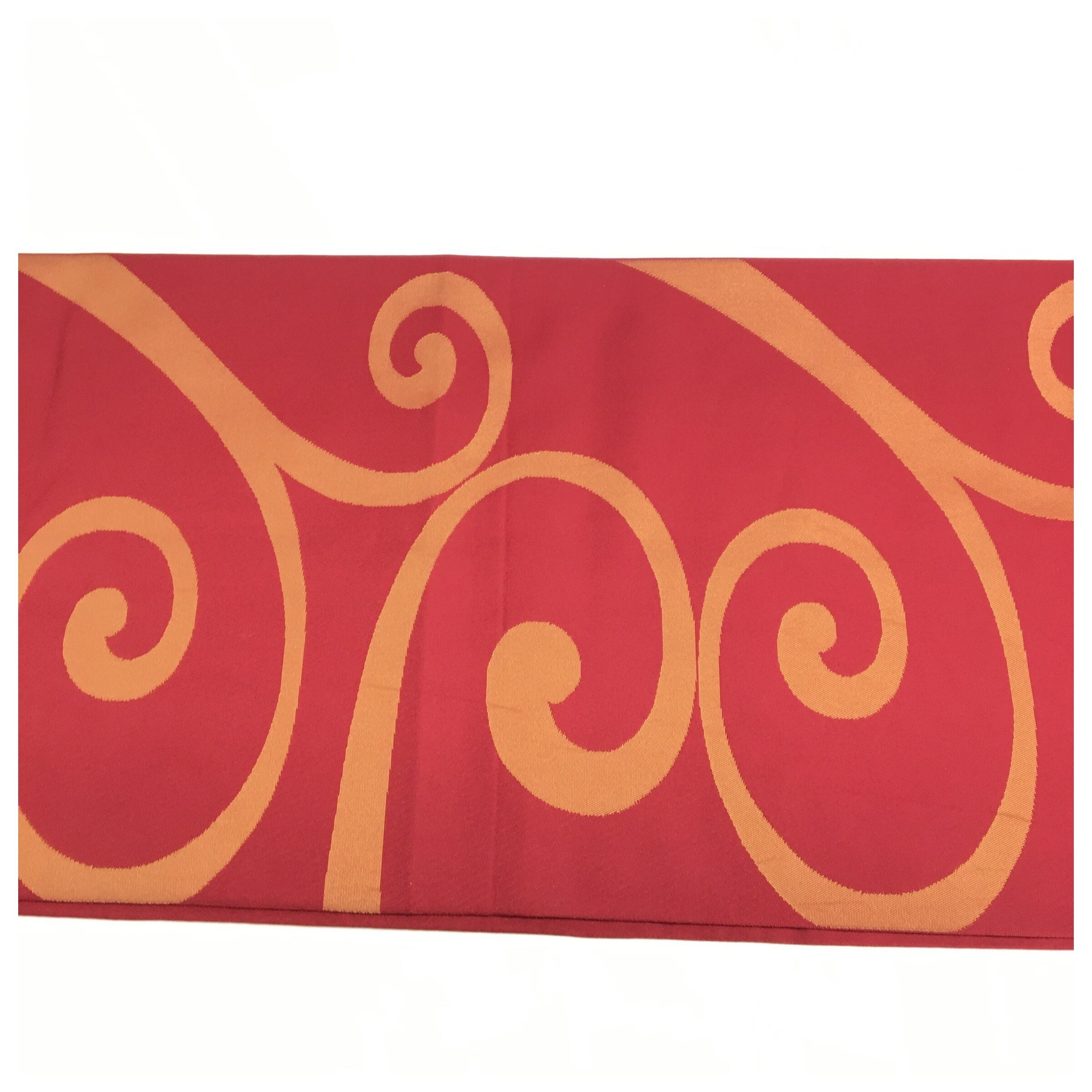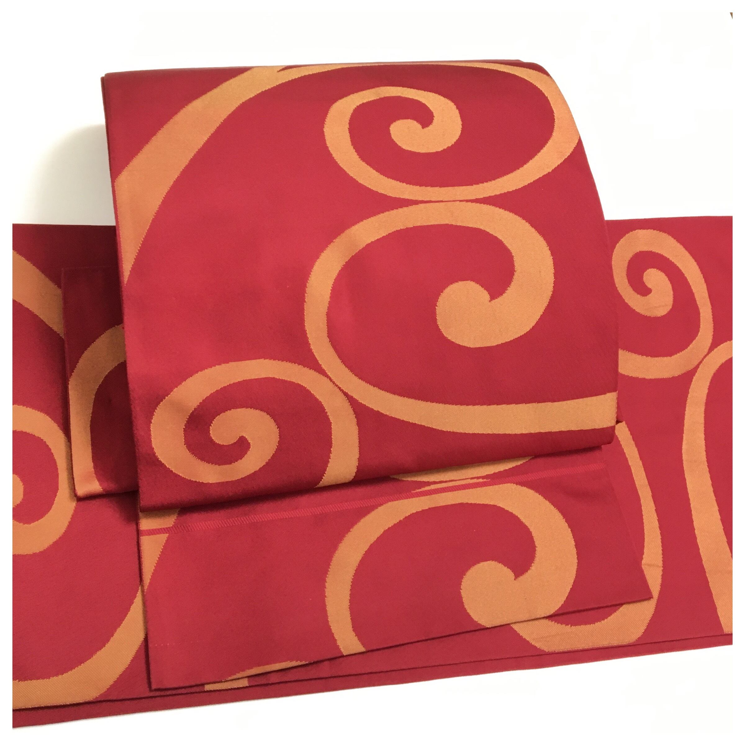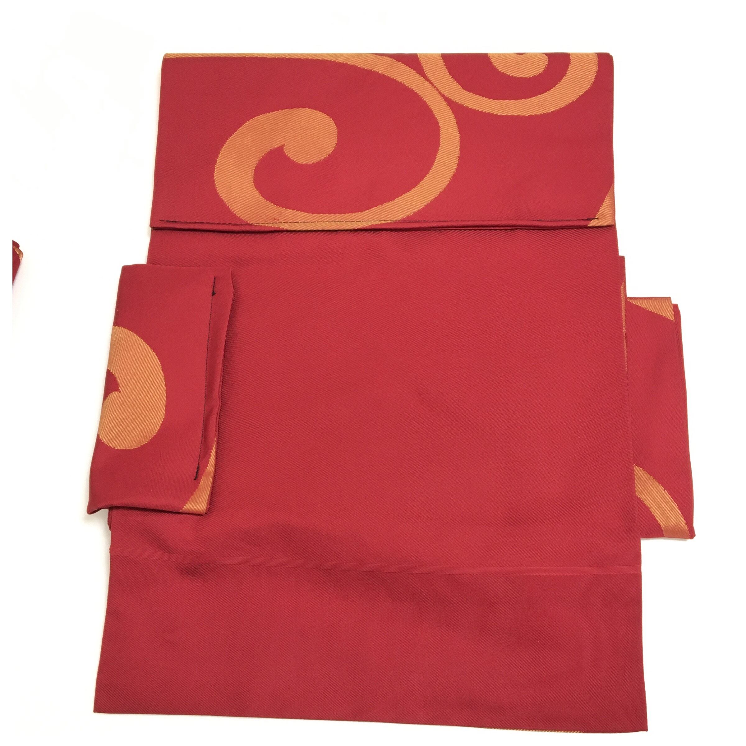 美品 正絹 赤 渦模様 二部式 二重太鼓 作り帯 です。