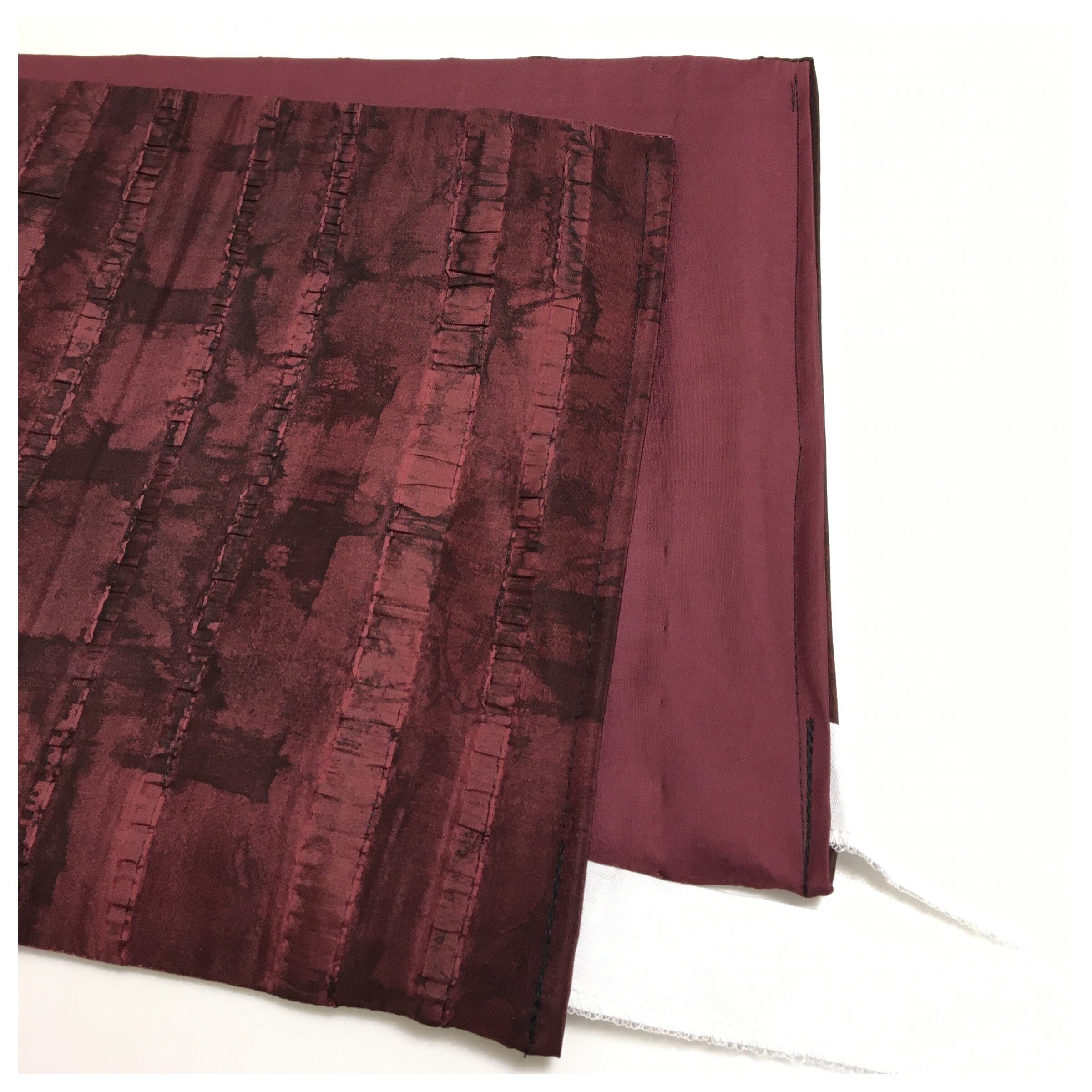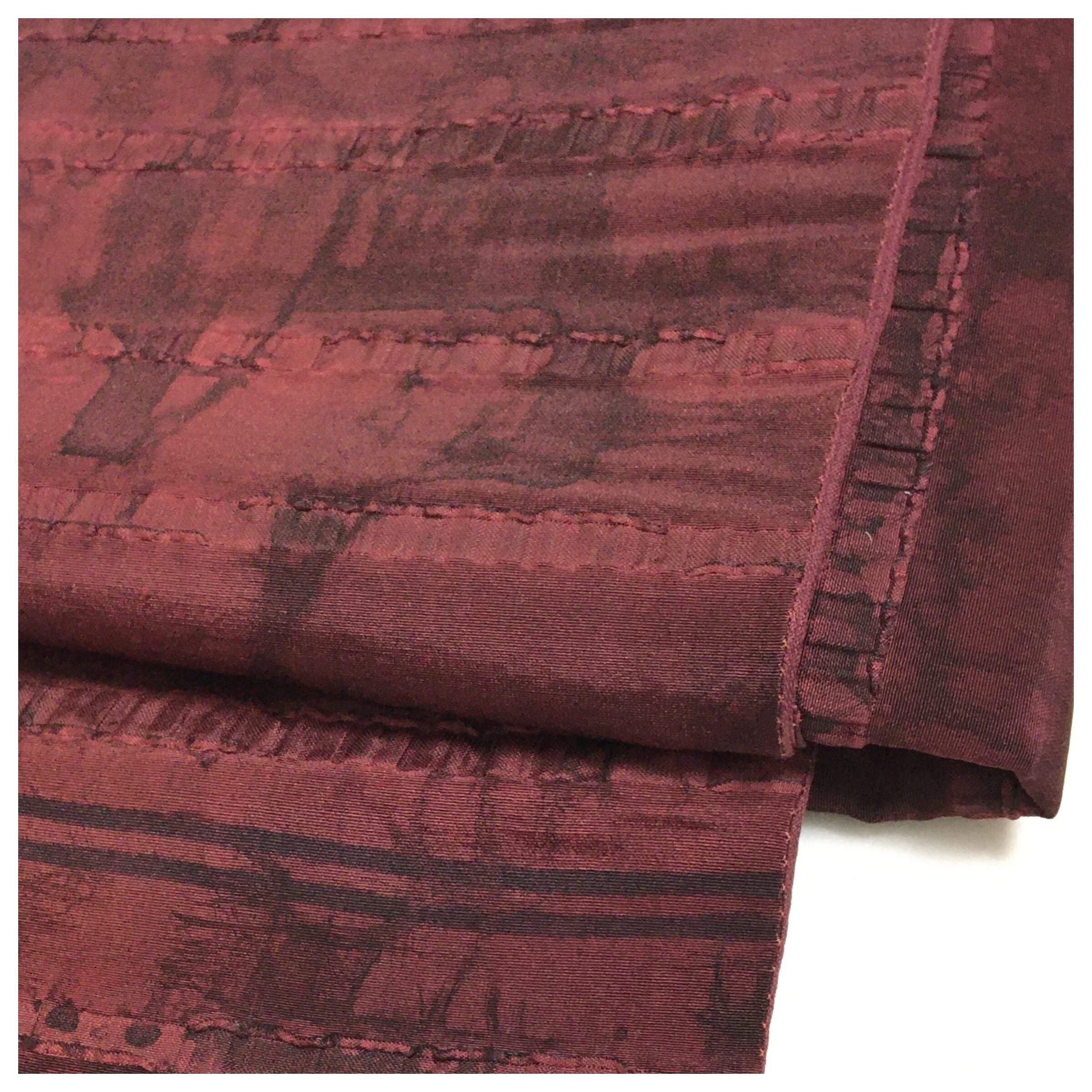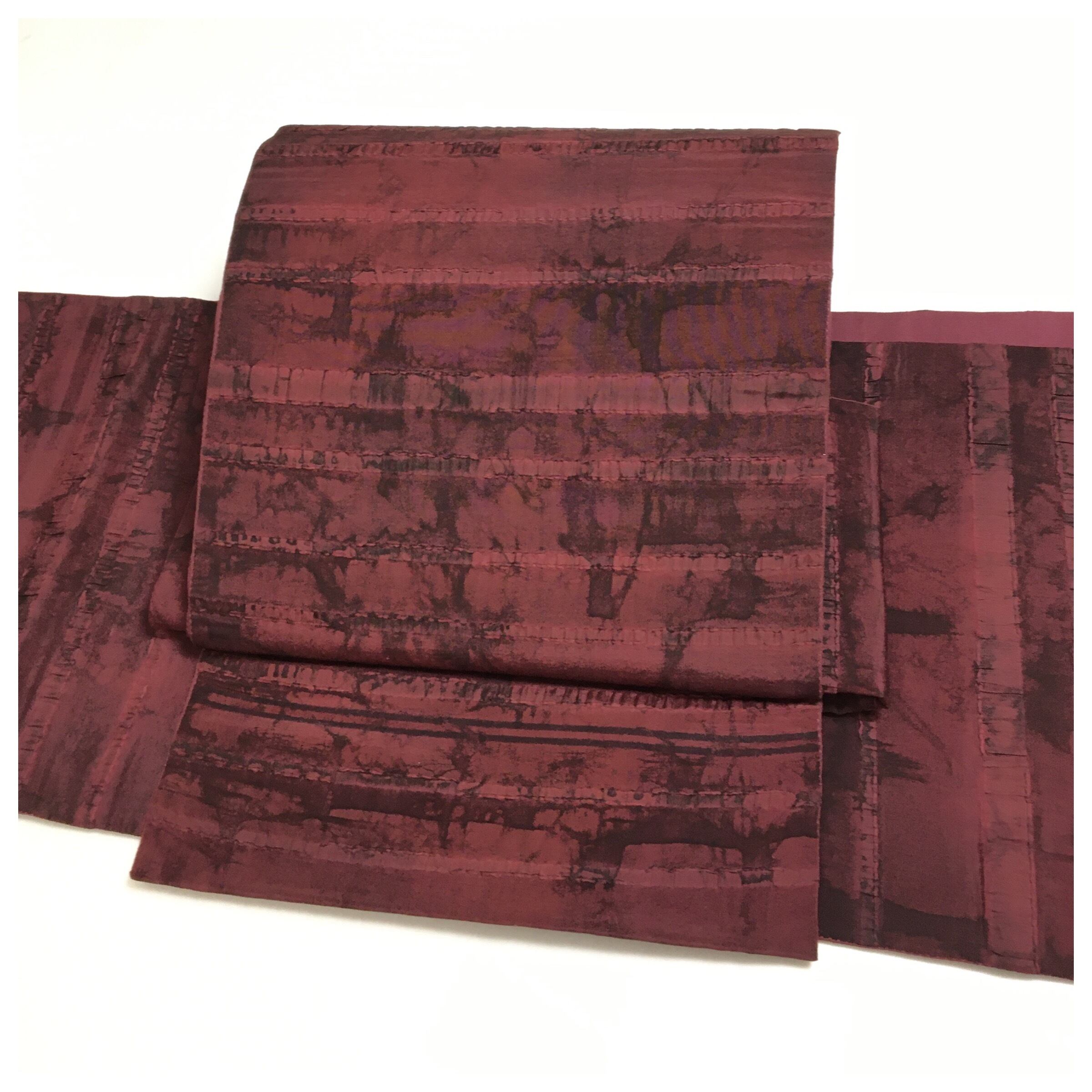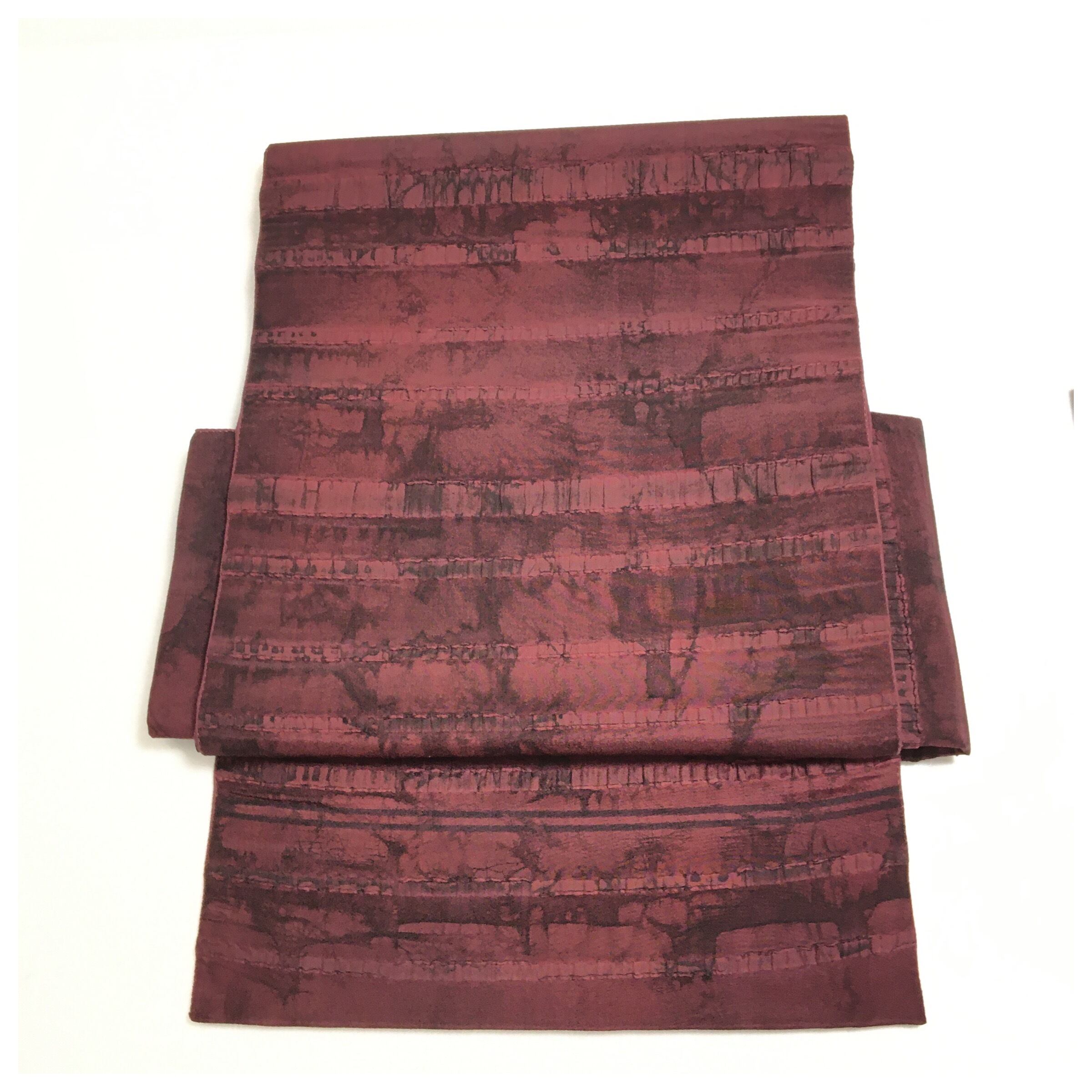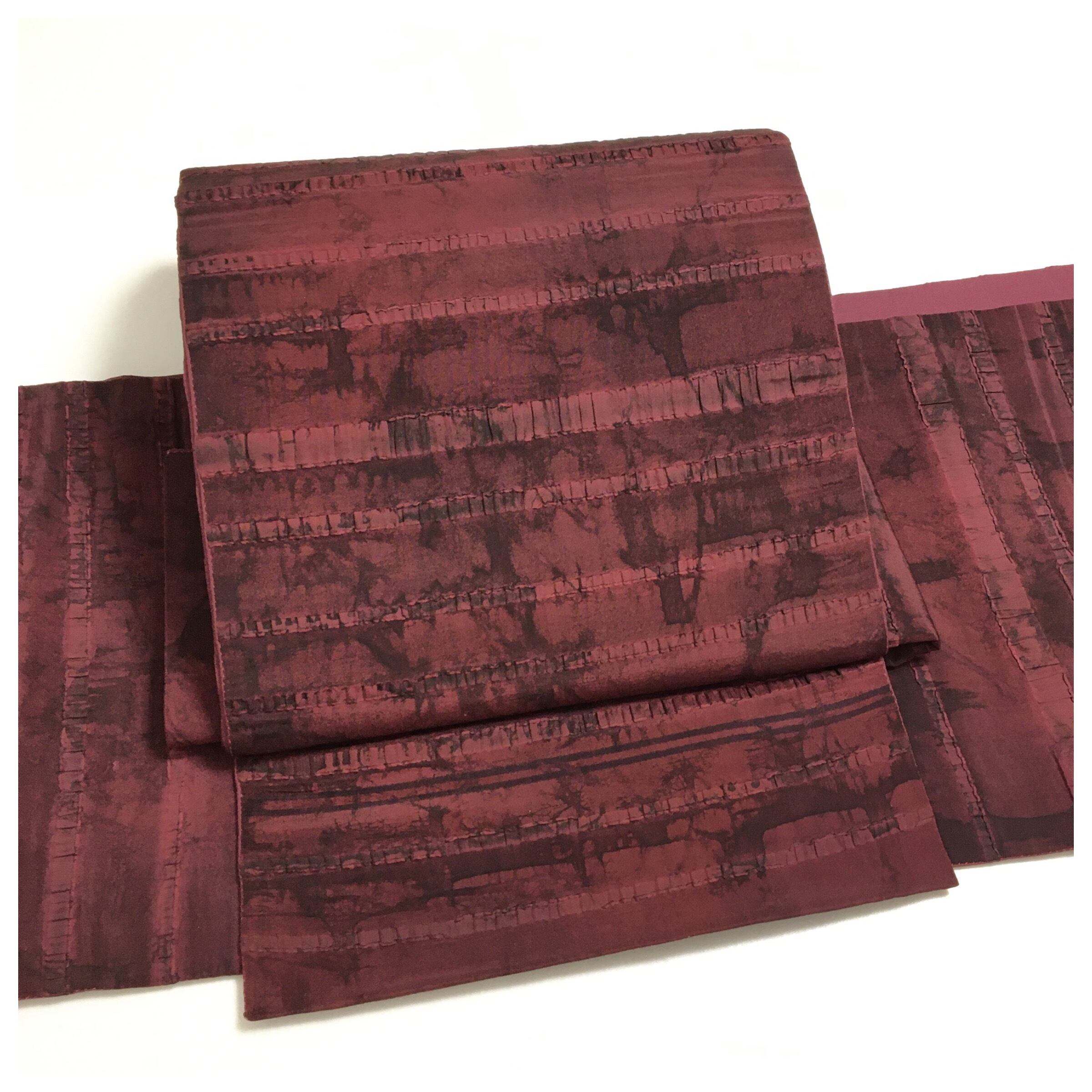 美品 正絹 楽帯 膨れ織 ろうけつ染 赤紫 袋帯 二部式 二重太鼓 作り帯 です。