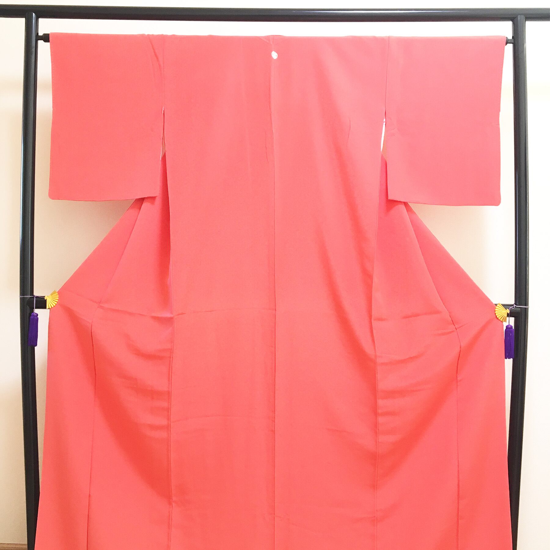 美品 上質 正絹 色無地 赤ピンク 無地柄 身丈165 裄65 リサイクル着物 です。
