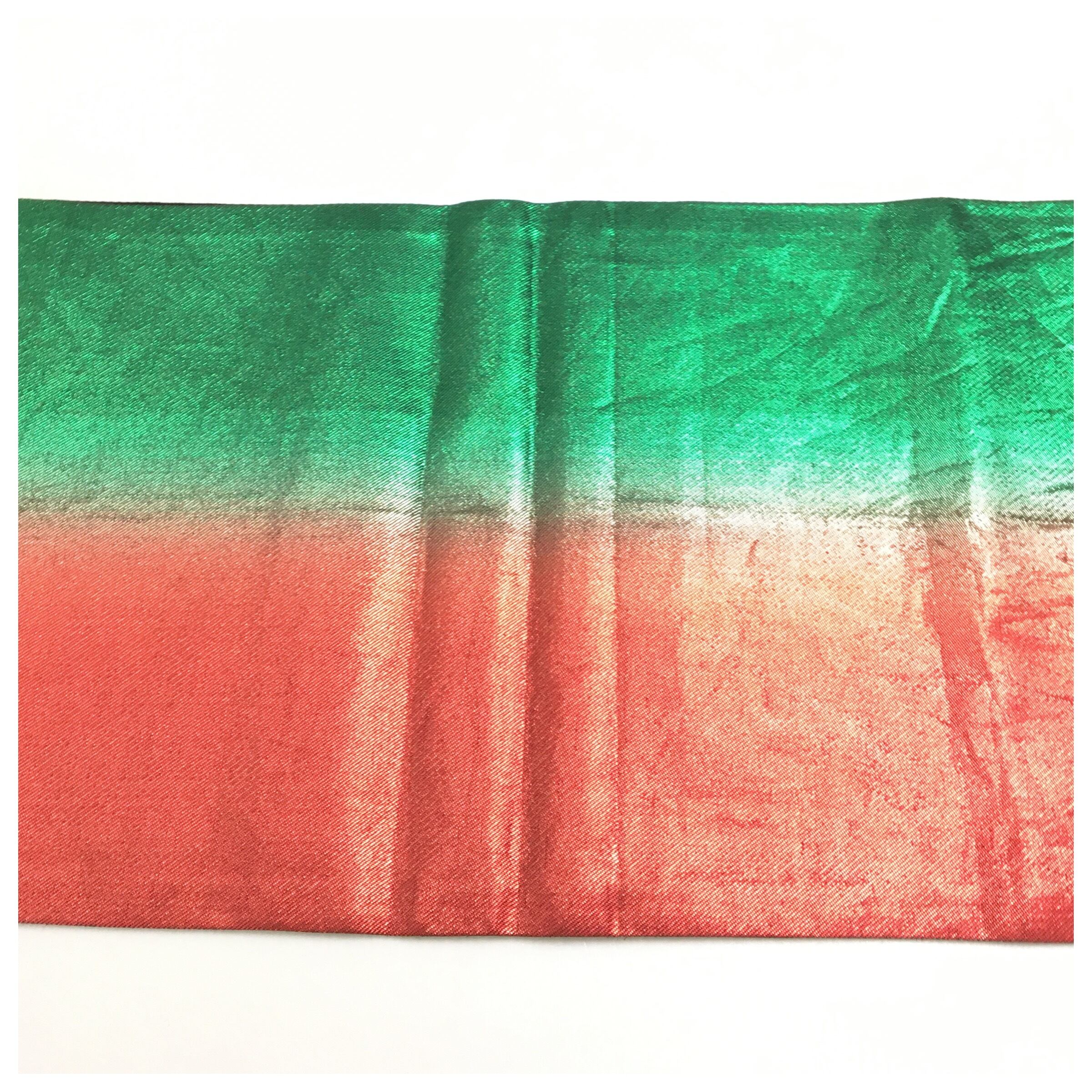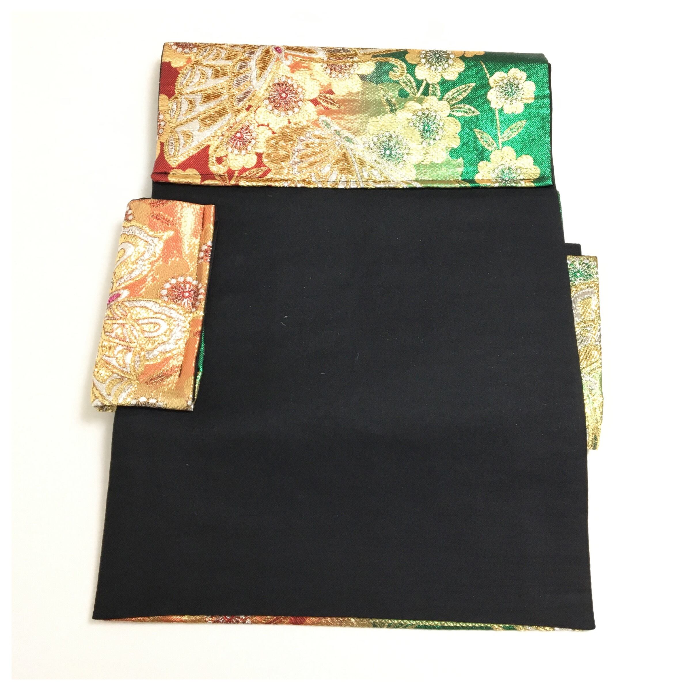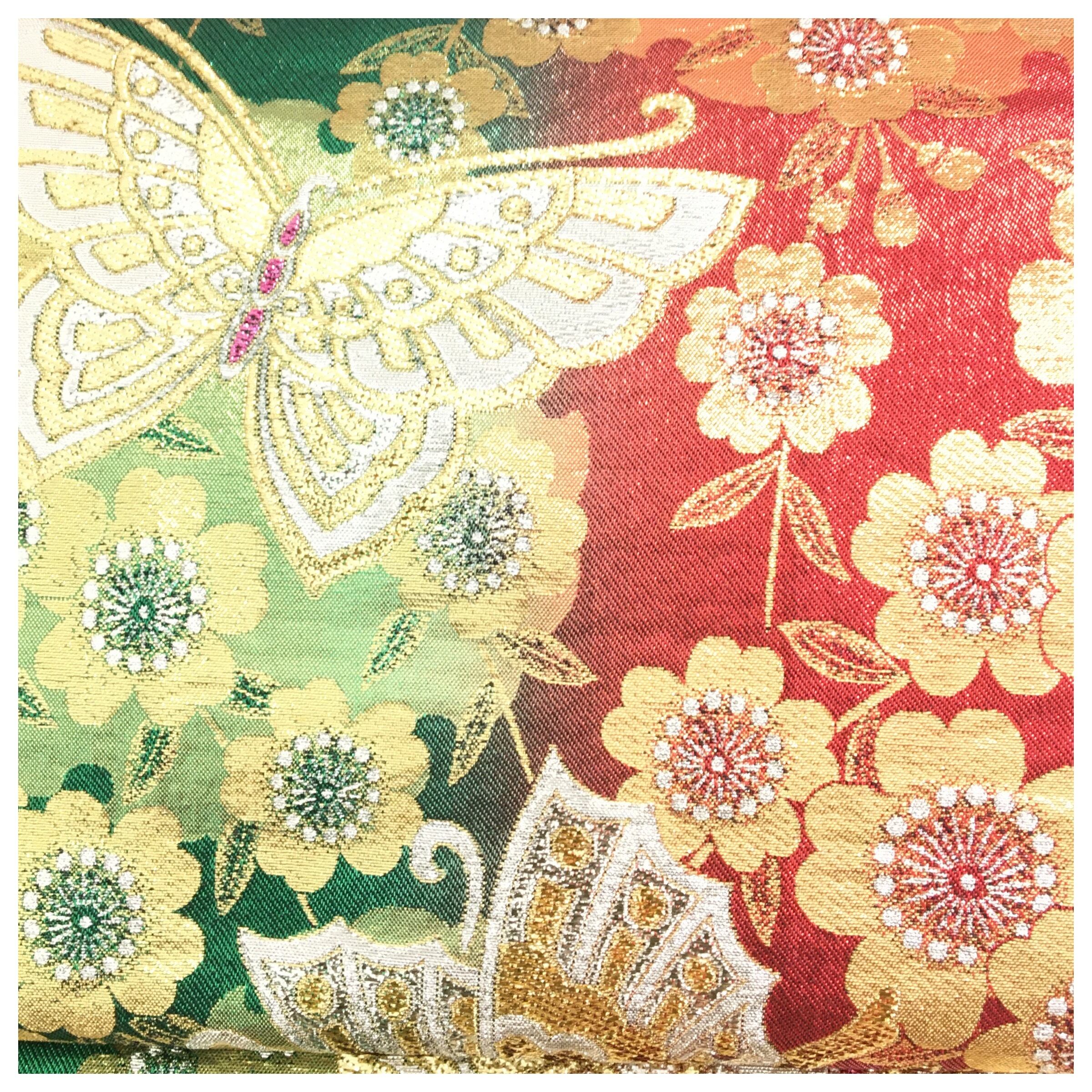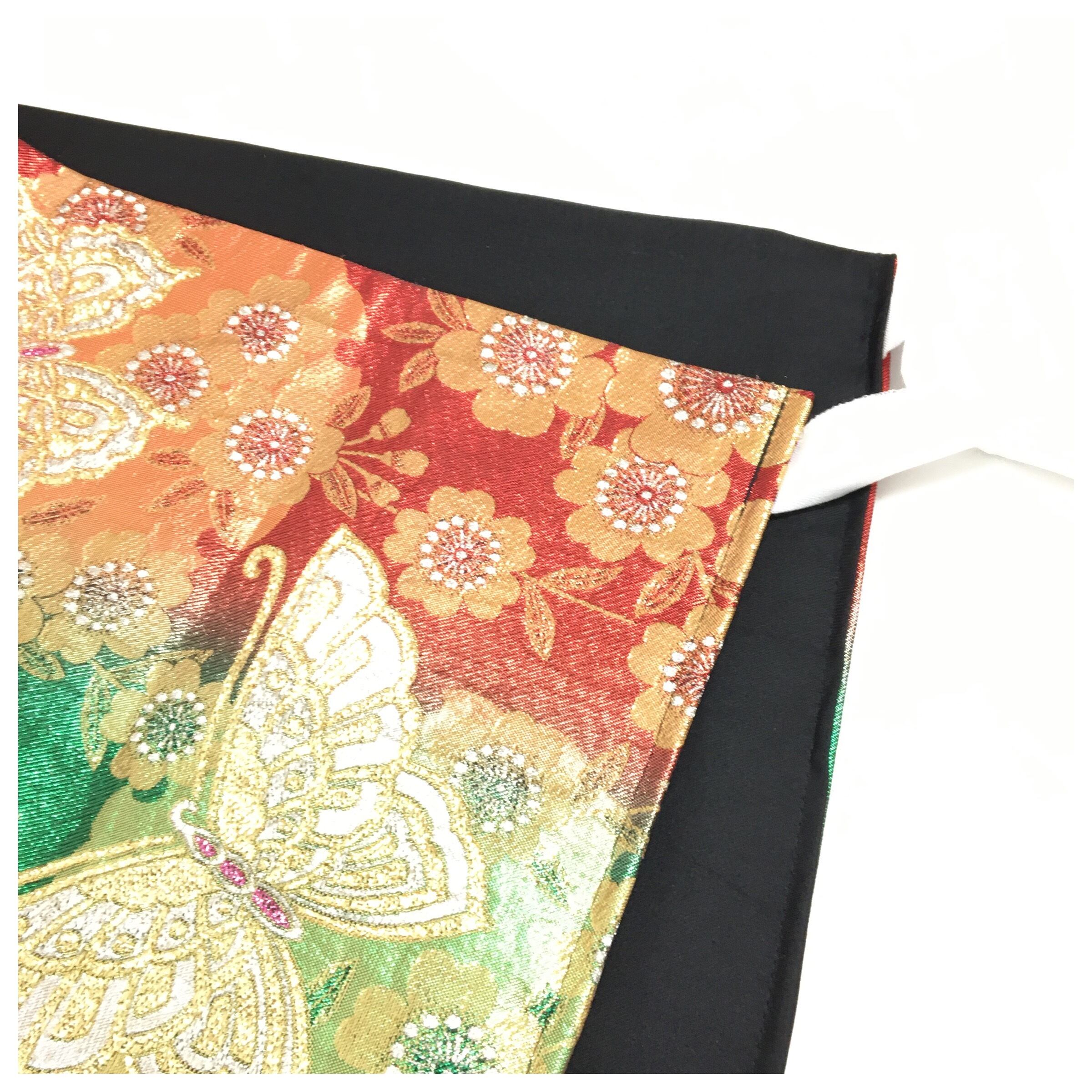 正絹 付け帯 蝶々 赤 緑 二部式 二重太鼓 作り帯 です。