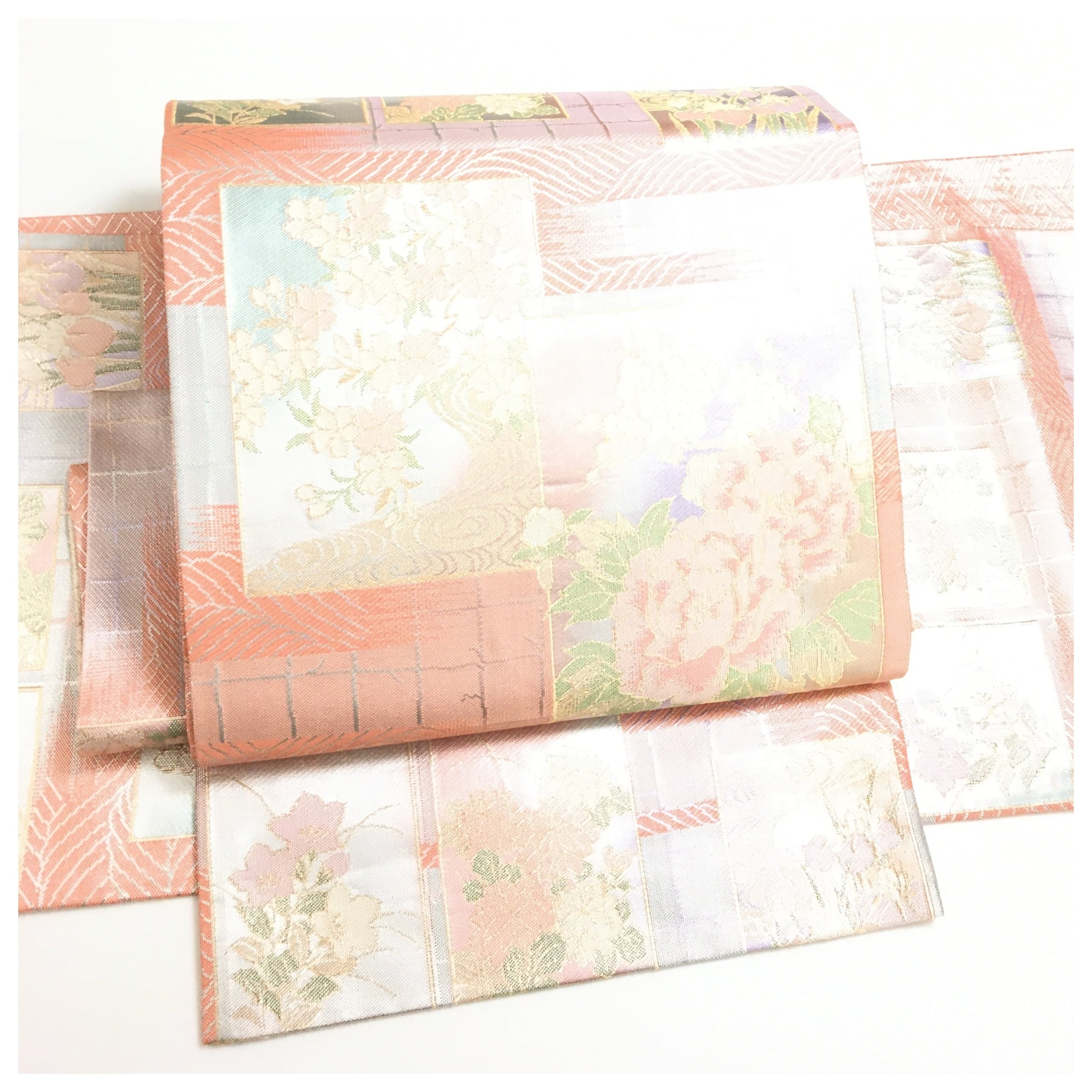 正絹 付け帯 ピンク 銀彩 華模様 二部式 二重太鼓 作り帯 です。