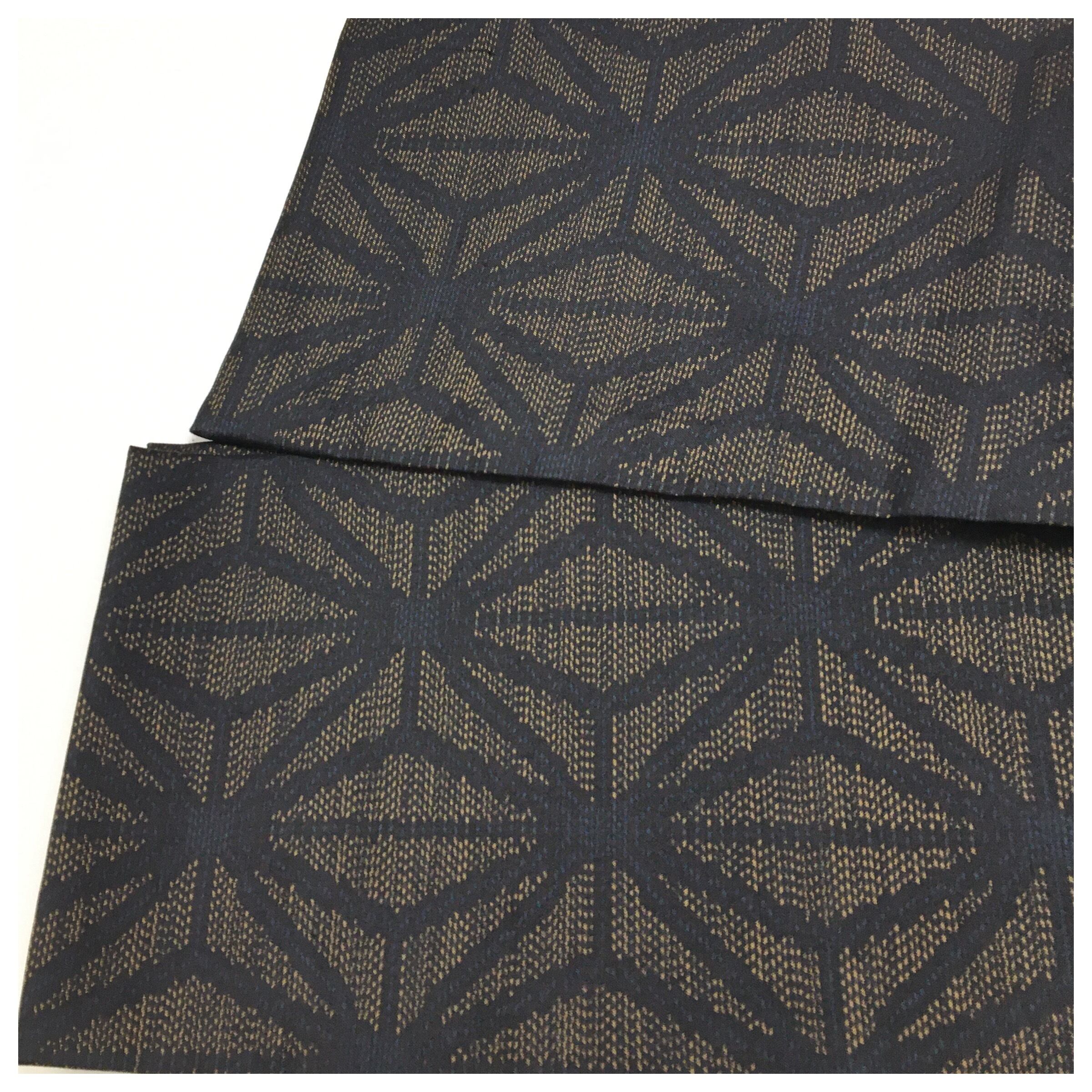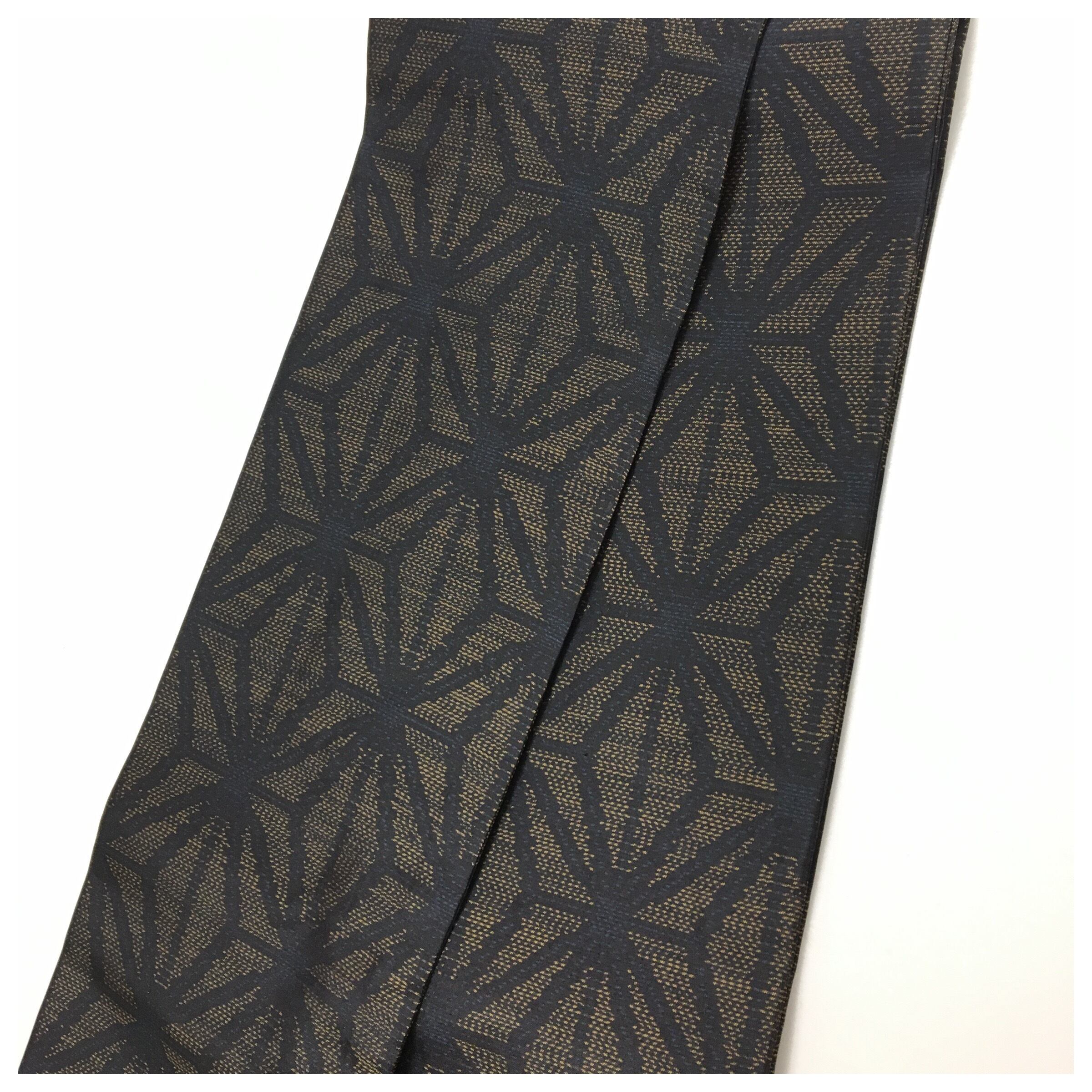 美品 上質 正絹 お召 黒 麻の葉 全通柄 長尺392cm