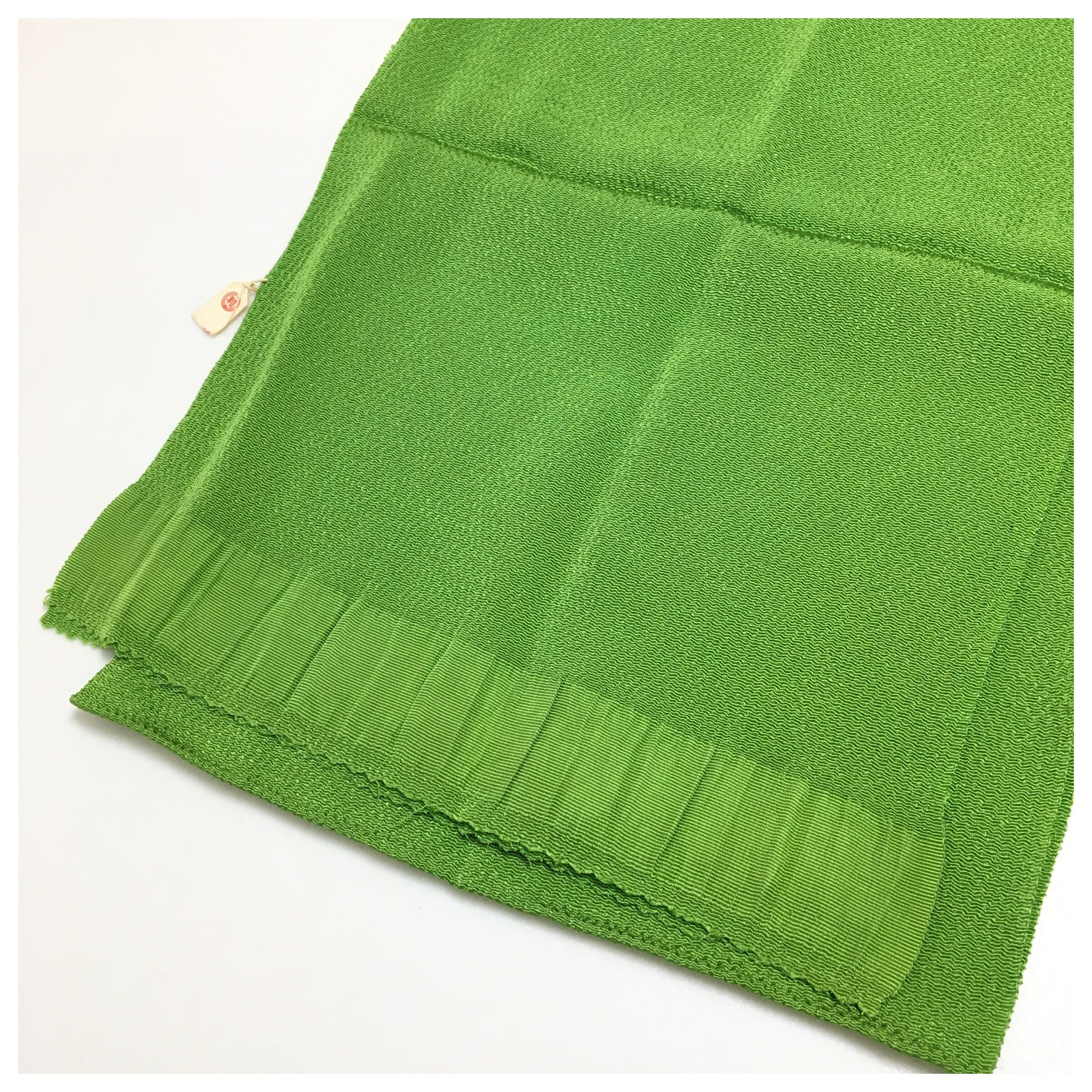 正絹 縮緬 帯揚げ 黄緑 色無地 和装 小物 中古品です。