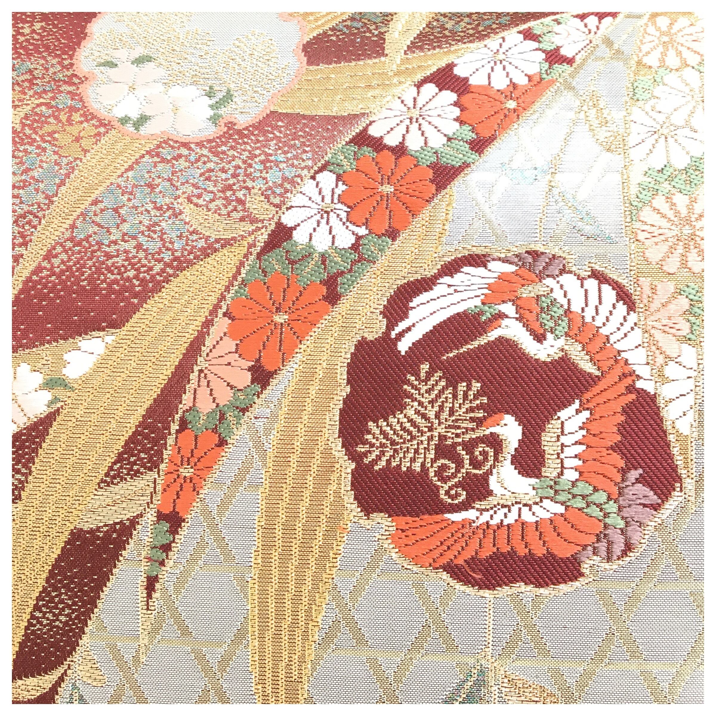 未使用・美品 正絹 袋帯 芳醇なボルドーに輝く吉祥花菱文様 六通柄 430cm