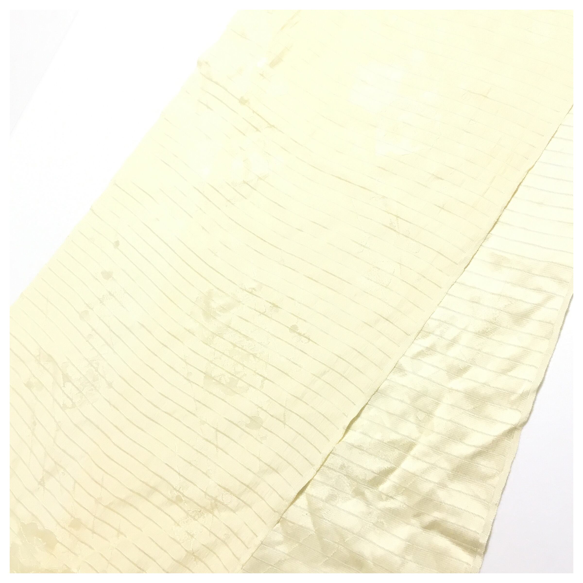 1枚は、爽やかなレモンイエローの夏物(絽)。透け感のある軽やかな織りに、繊細な地紋が施されており、盛夏の装いに涼しげな印象を添えます。