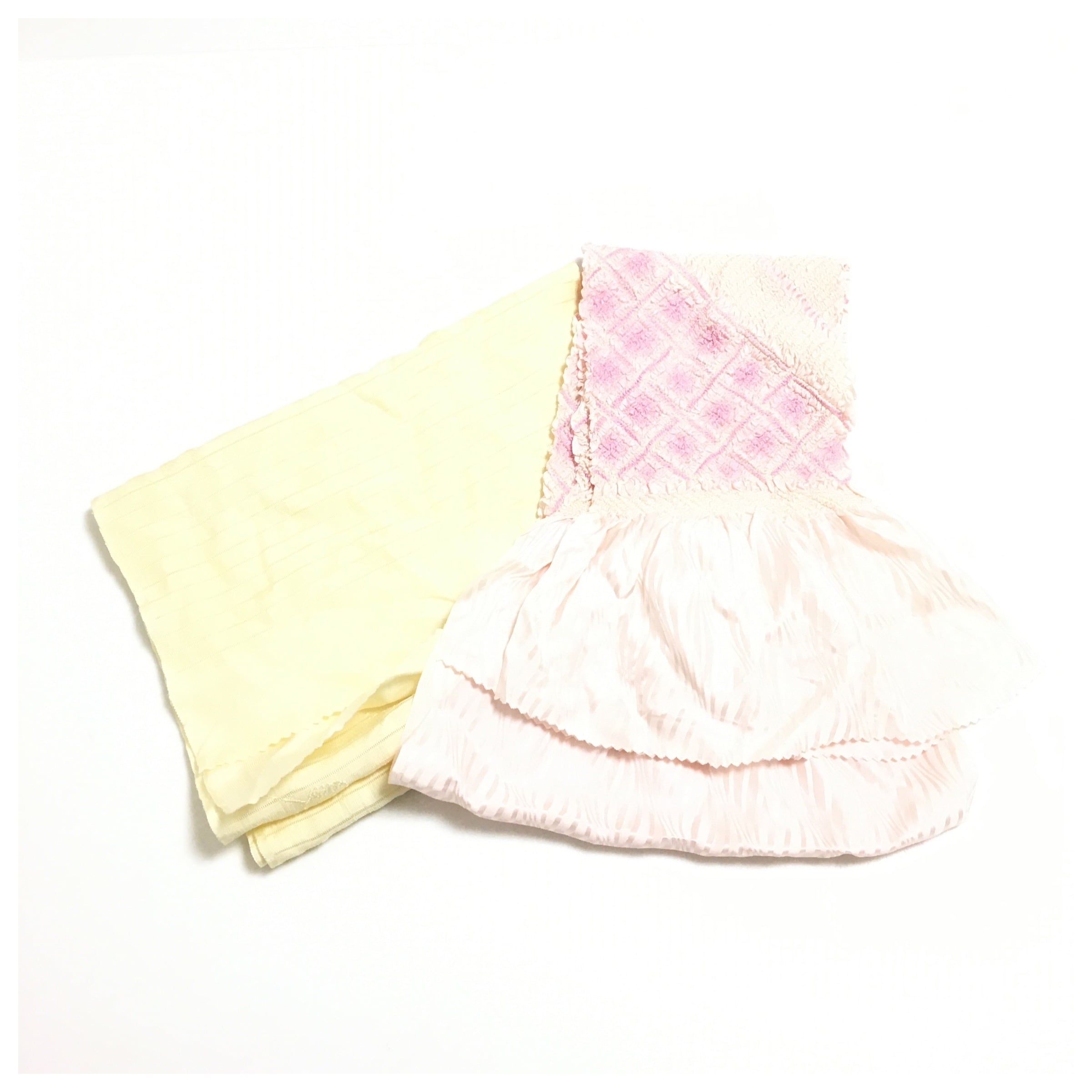 彩り2点セット 正絹 帯揚げ 夏物 絽 黄色 & 絞り ピンク 和装小物 リサイクル
