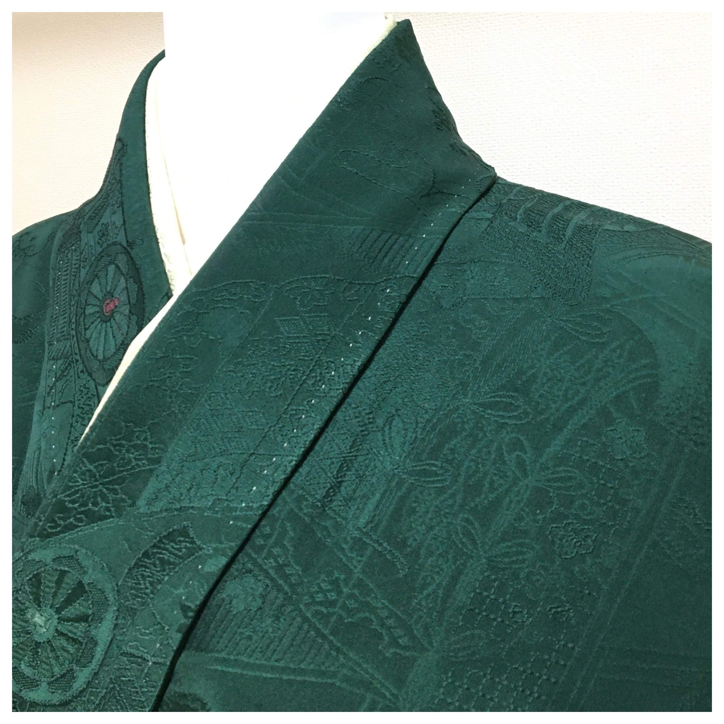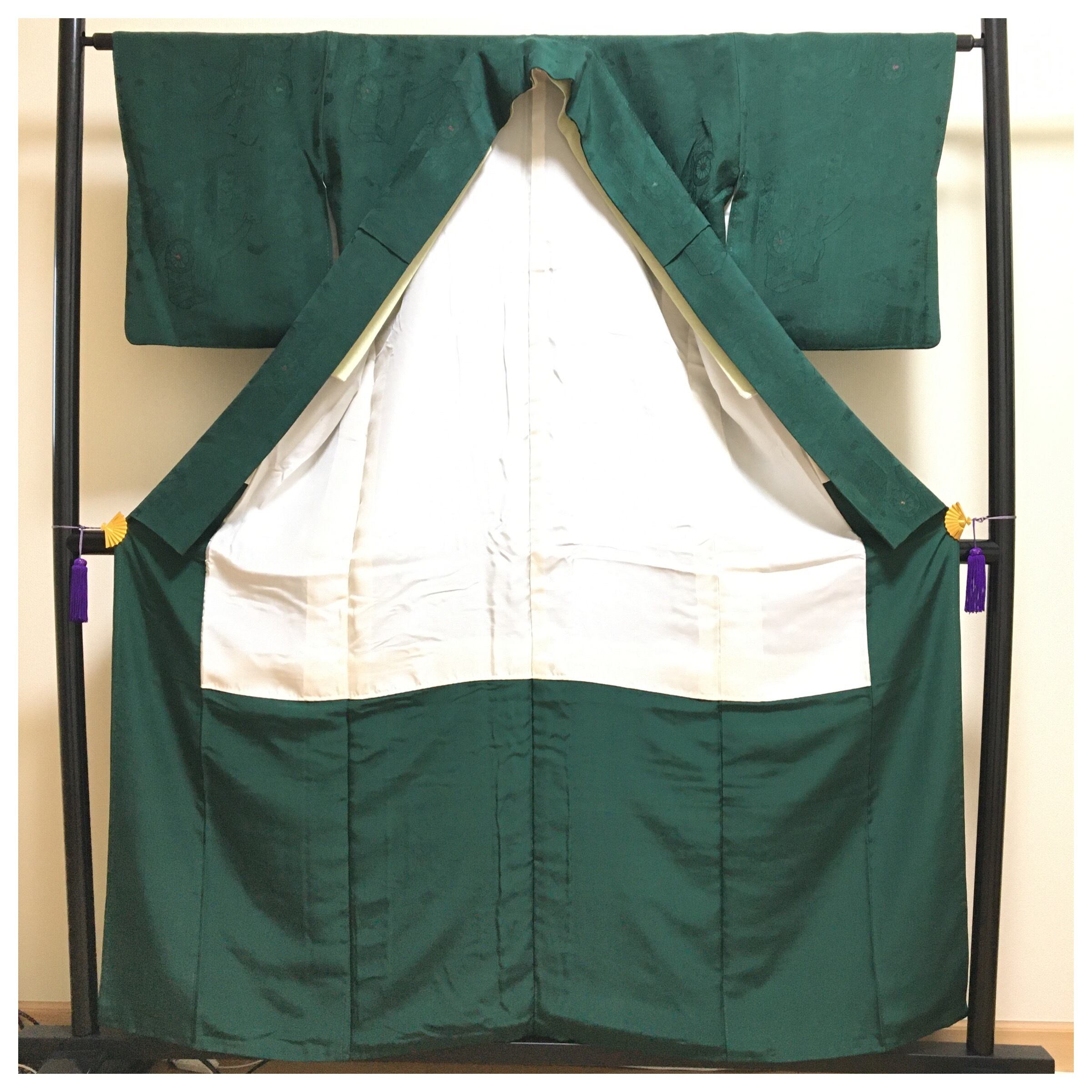 正絹 色無地 紋意匠 華車文様 深緑色 伊達衿付き 礼装 セミフォーマル