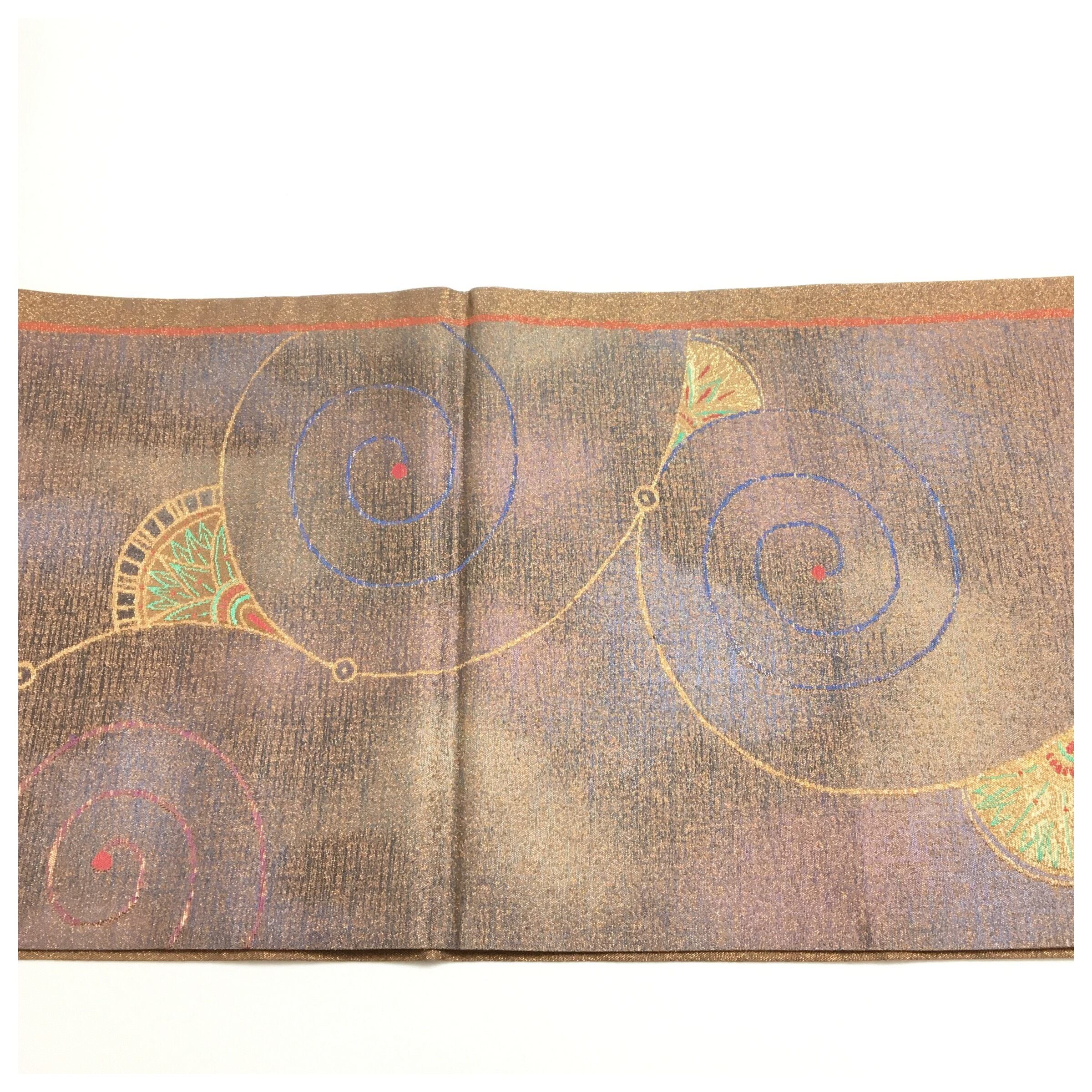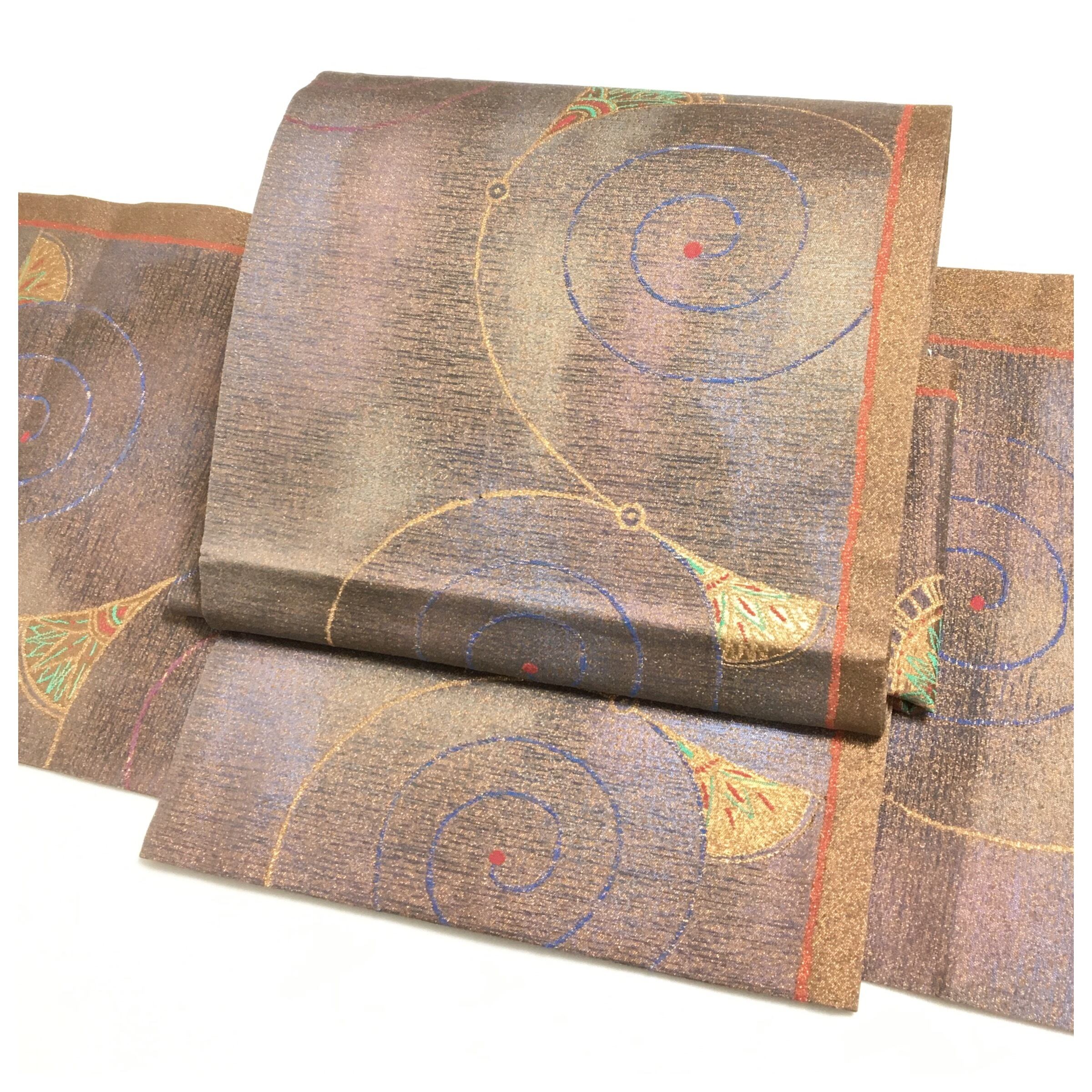 美品 正絹 作り帯 袋帯 ブロンズ 金糸の煌めきが映える二重太鼓 付け帯 螺旋模様 華やぎの帯姿