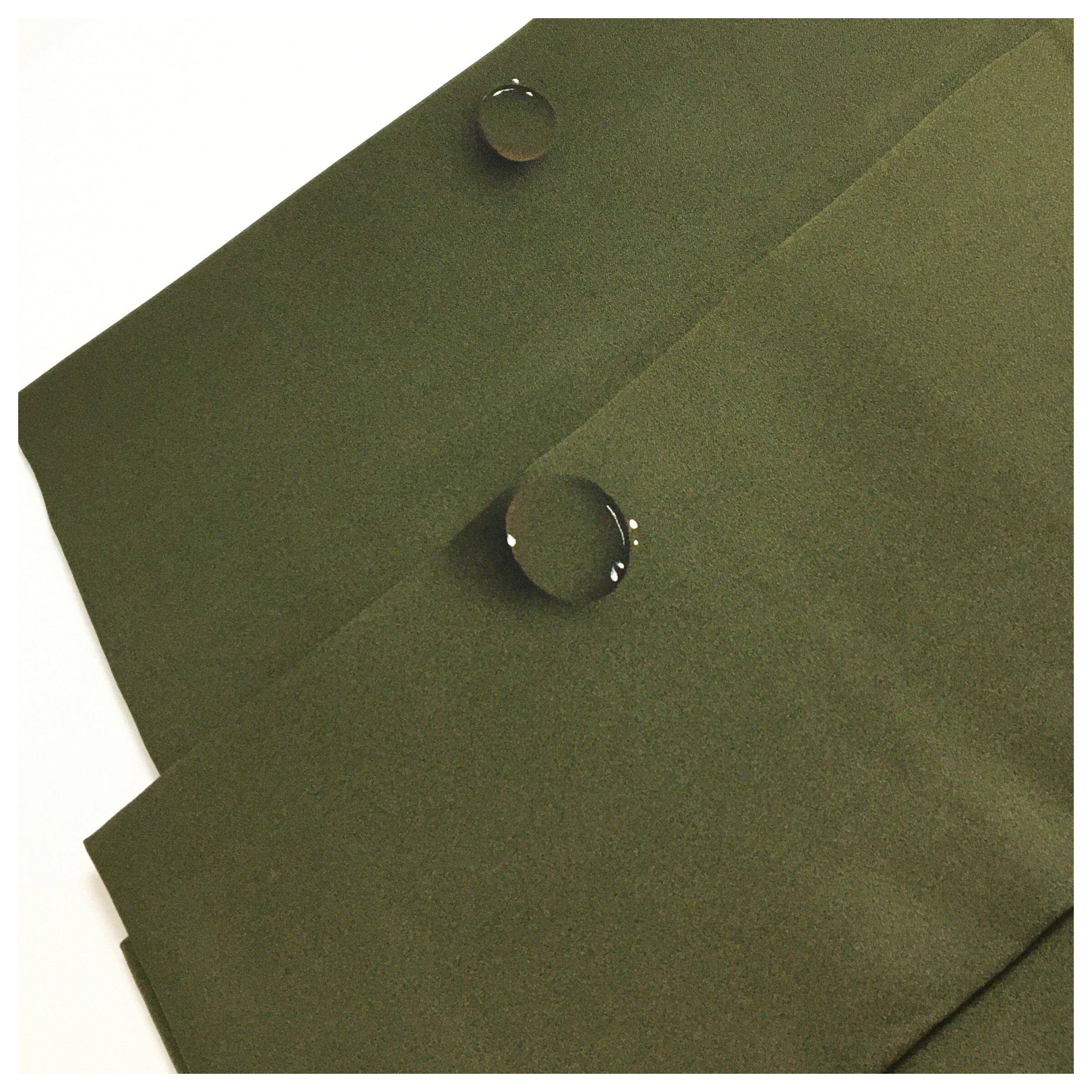 しっとりと落ち着いたオリーブ色が美しい、正絹の創作半幅帯です。
