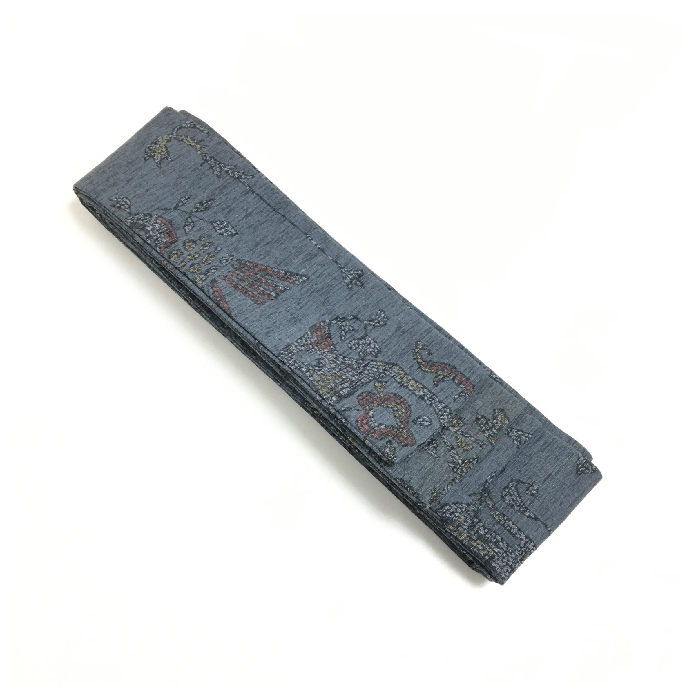 正絹 角帯 紺鼠色 エスニック幾何学文様 異国情緒ある意匠 個性豊かな装い