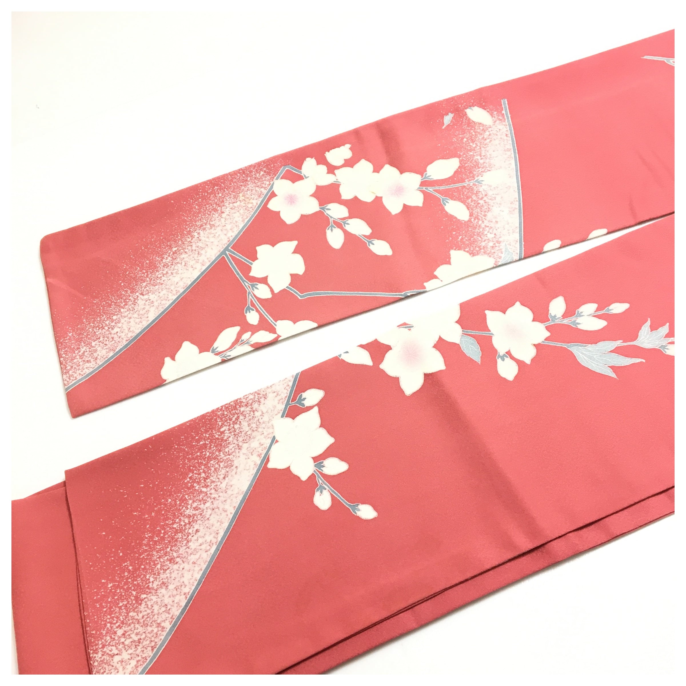 訪問着を解いた生地を使用していますが、画像の通り、柄に紛れた薄い汚れが見受けられます。着用時には大きく目立ちにくいものですが、アンティーク・リメイク品の風合いをご理解いただける方におすすめいたします。