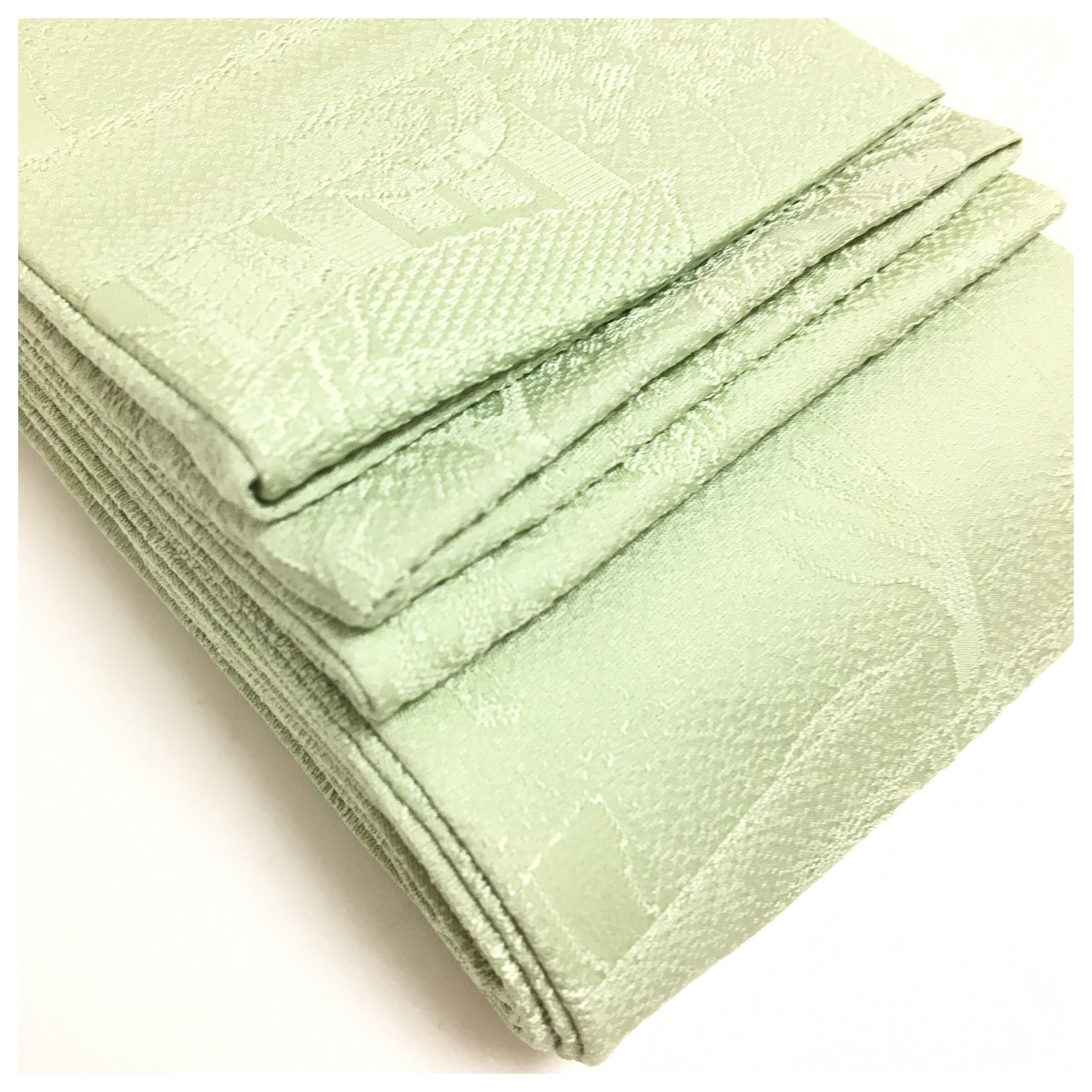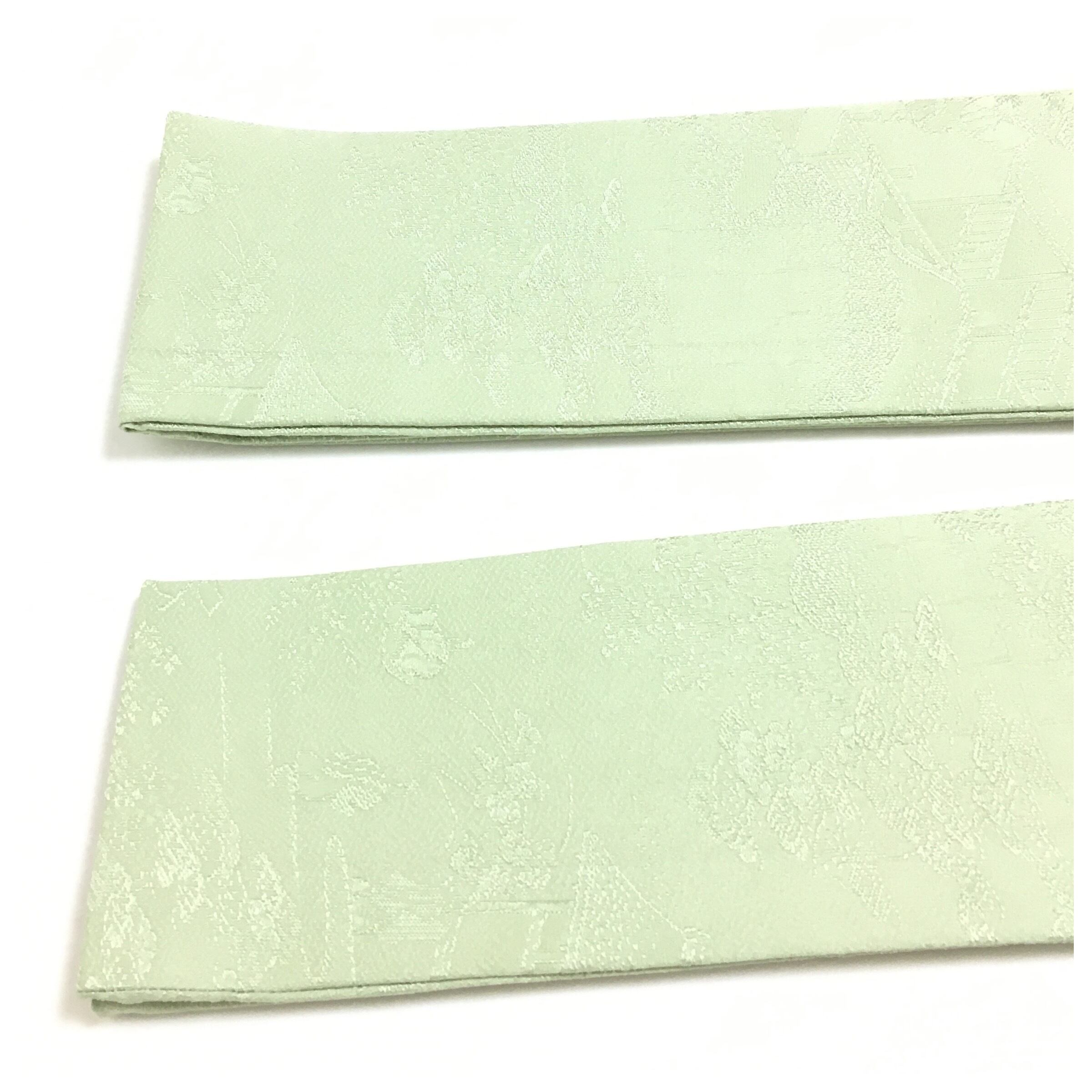美品 正絹 角帯 平安風図 創作帯 古典の物語 優雅な装い 淡い黄緑