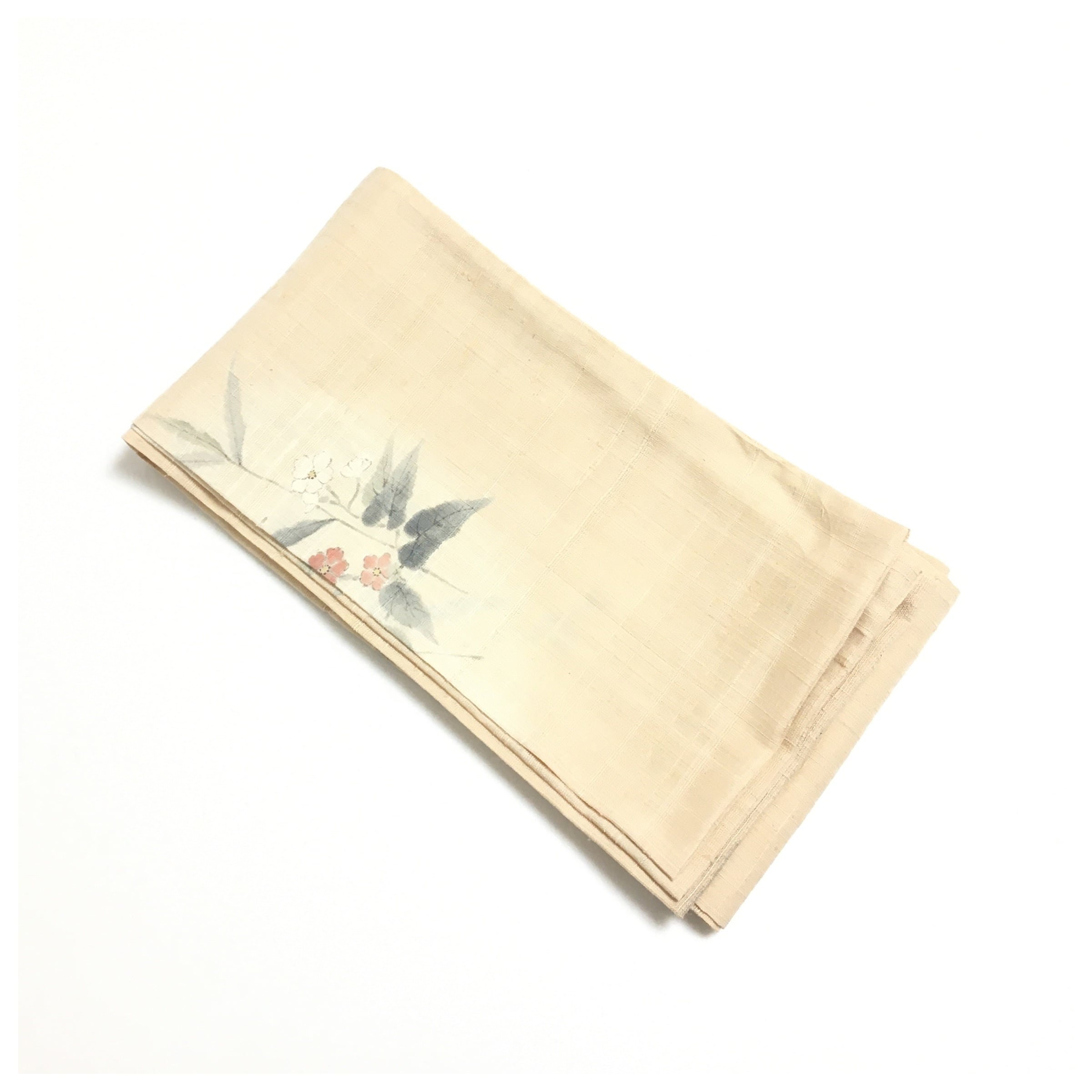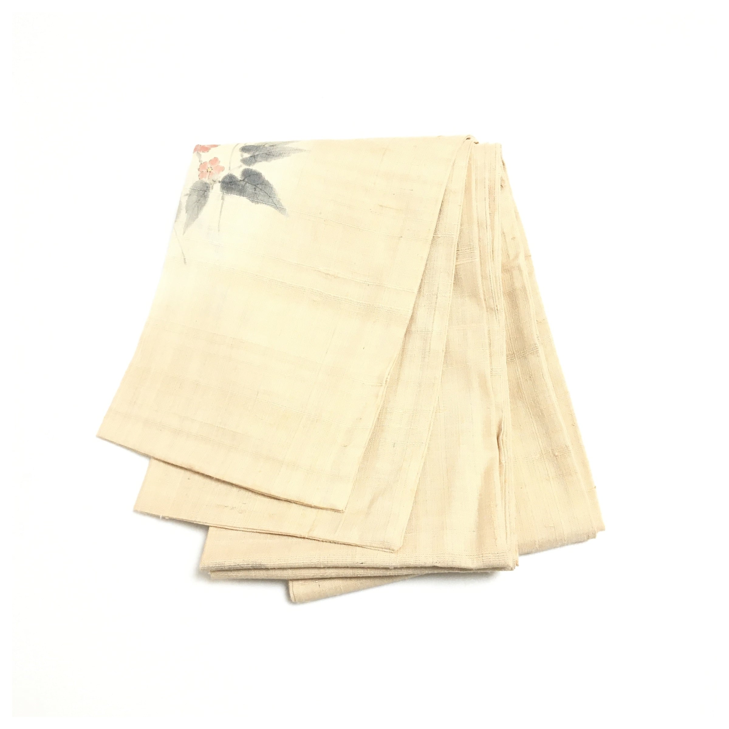 正絹 長尺 夏物 兵児帯 生成り 紬 淡い色彩の草花 涼やかな風を愉しむ