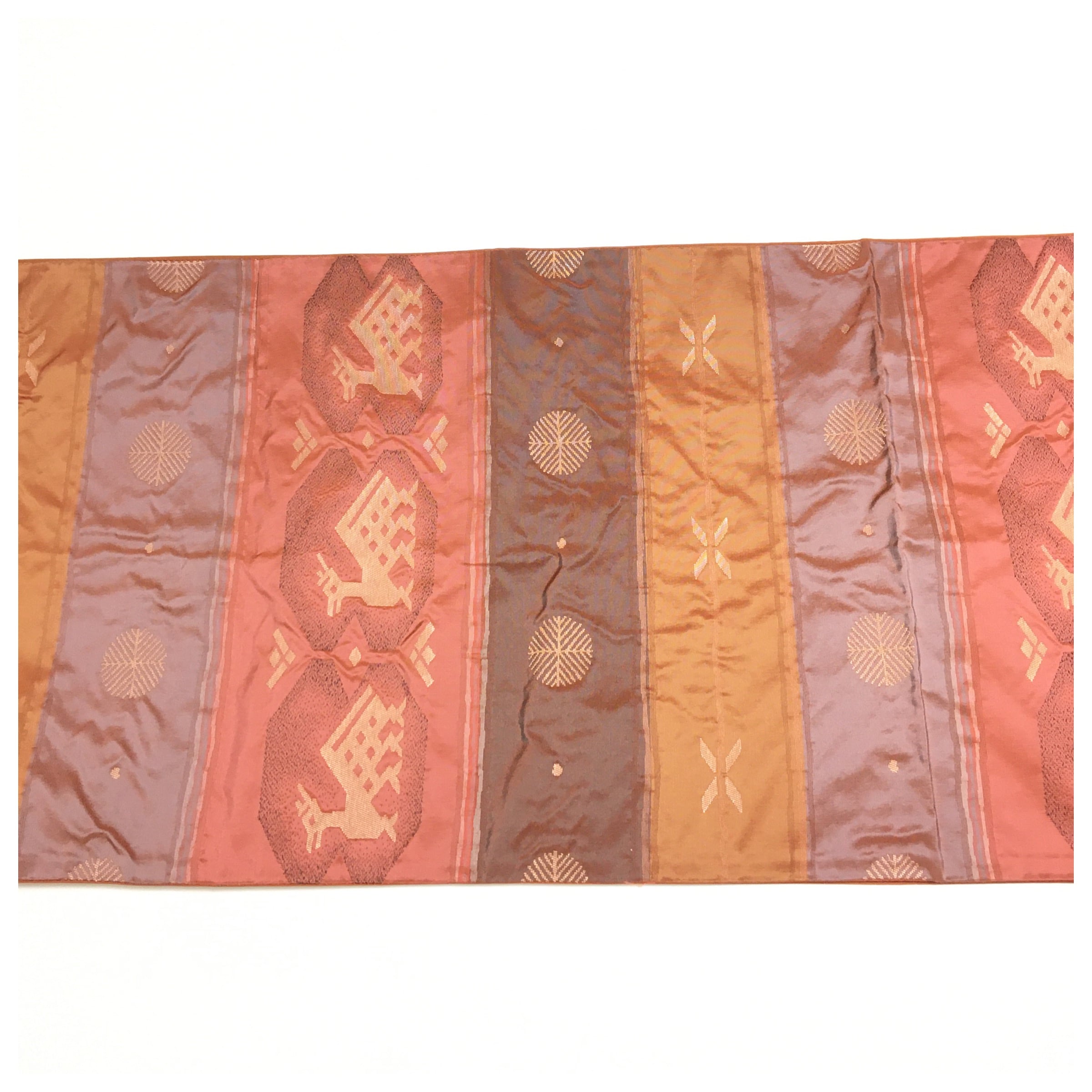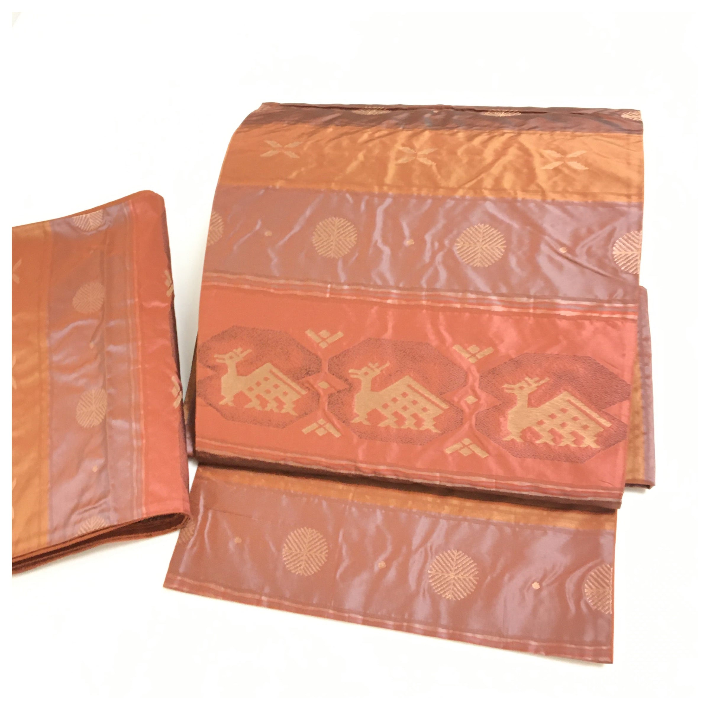 美品 正絹 作り帯 二部式 袋帯 赤茶色 有栖川文様 伝統の気品