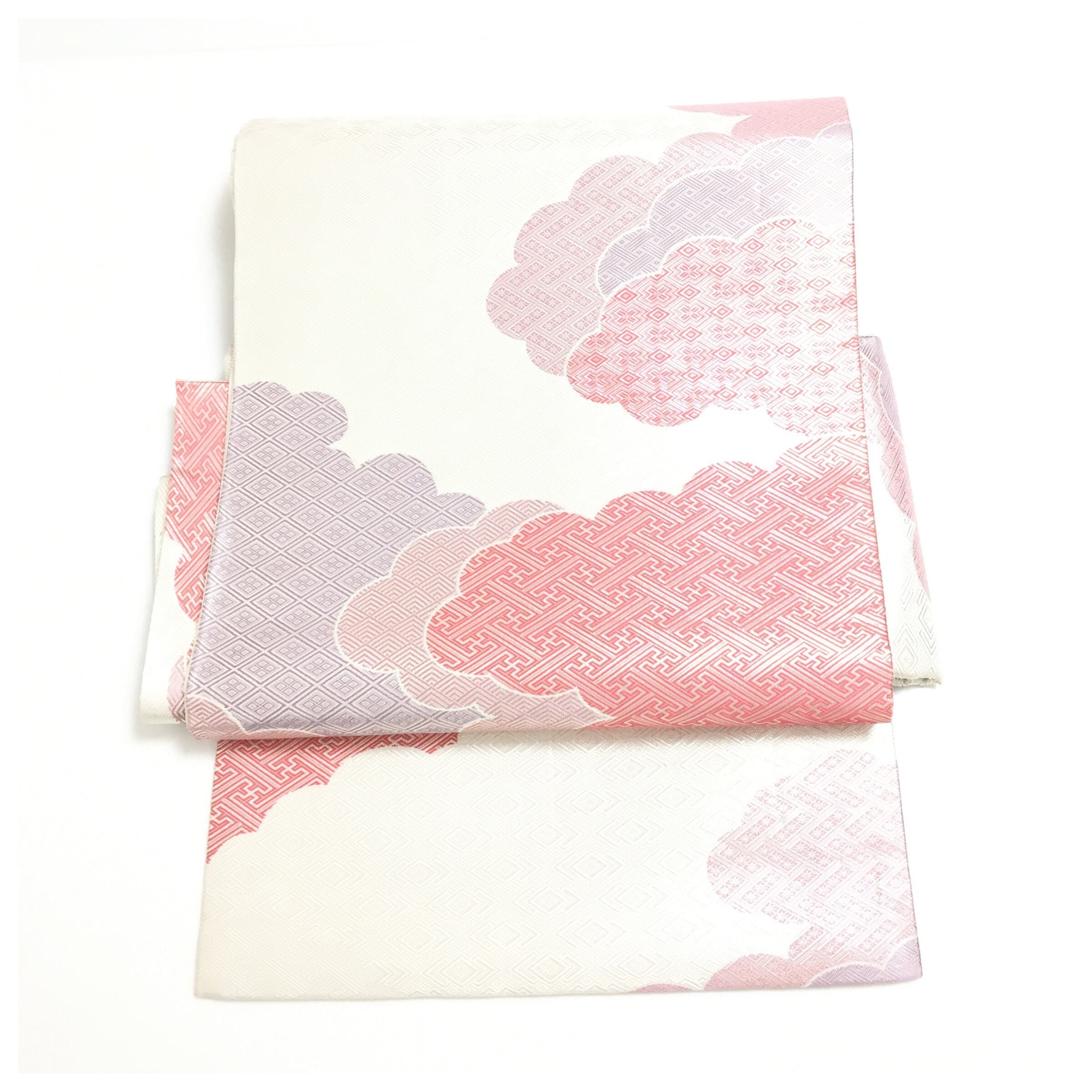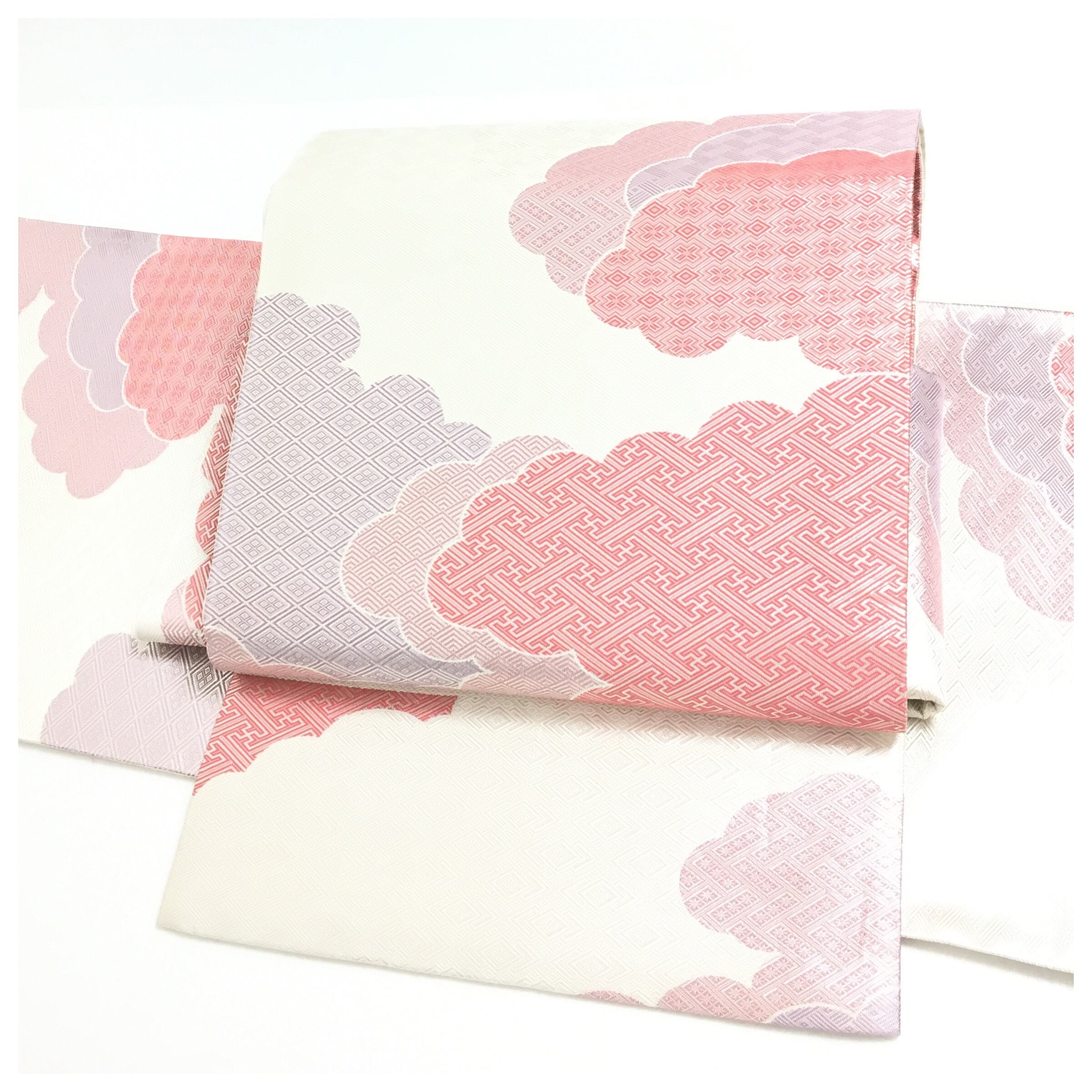意匠の主役は、たなびく雲の形を文様化した「雲取り(くもどり)」。その流麗な曲線が格調高いデザインです。銀地をベースに、雲の輪郭や文様に添えられた色彩が、おめでたいお席にふさわしい華やかさを演出します。