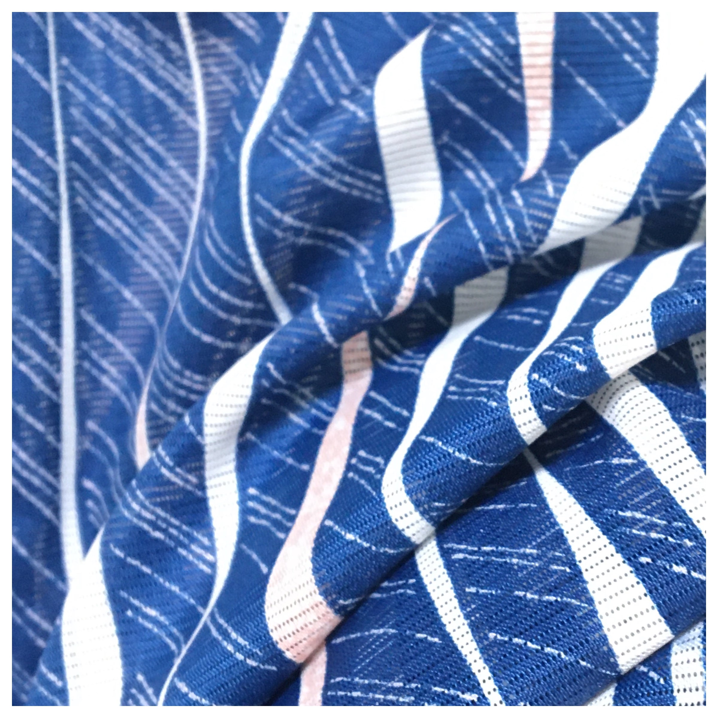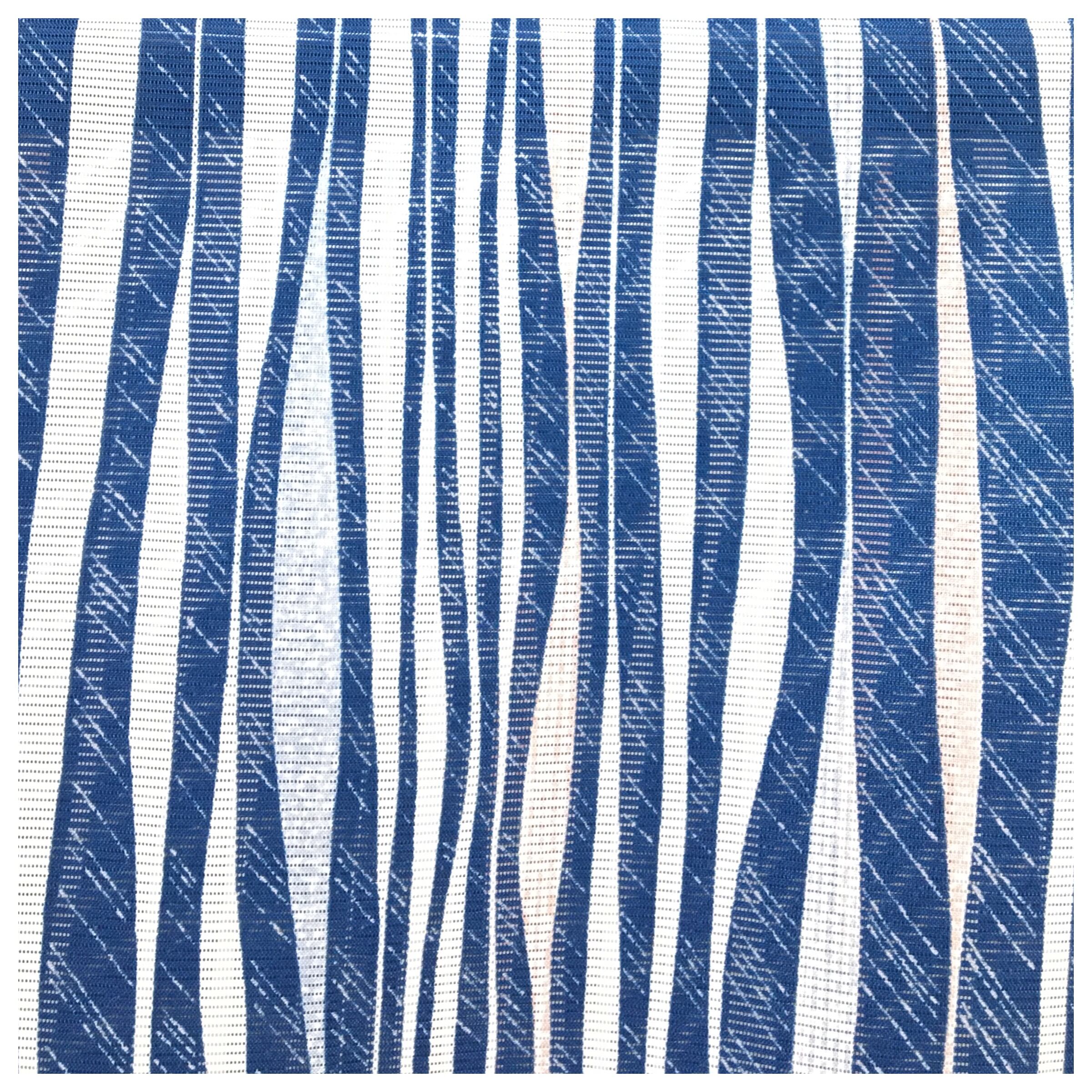 透け感が涼やかな「絽(ろ)」の生地に、清流の流れを思わせる流水文様が描かれた、夏にぴったりの小紋です。鮮やかさと落ち着きを兼ね備えた青色は、視覚からも涼を運び、夏の強い日差しの中で美しく映えます。