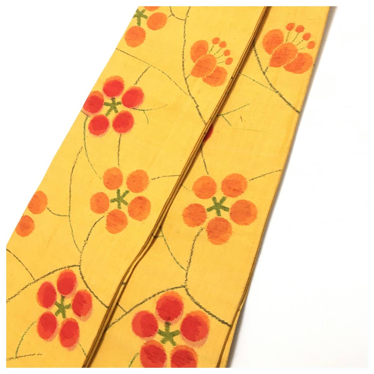 正絹 半幅帯 黄色 梅鉢文様 長尺440cm 創作帯 粋な着こなし