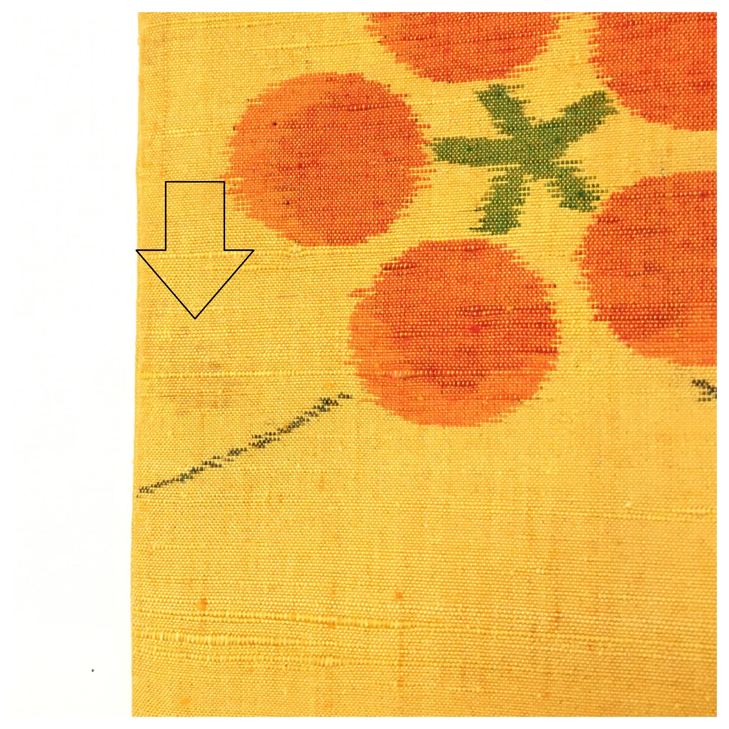 全体的に使用感は少なく、生地のハリも保たれています。ただし、画像の通り、一部に薄いシミが見受けられます。気になるほどではないですがアンティークやリメイク品の風合いをご理解いただける方におすすめいたします。