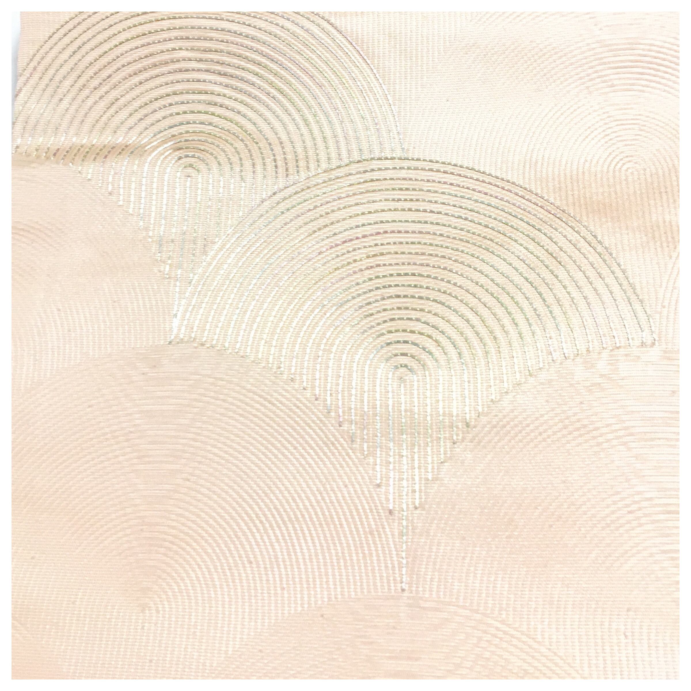 銀杏の葉のようにも見える優美な文様が、光の加減で上品に浮かび上がり、お太鼓に都会的で知的な奥行きを与えてくれます。
