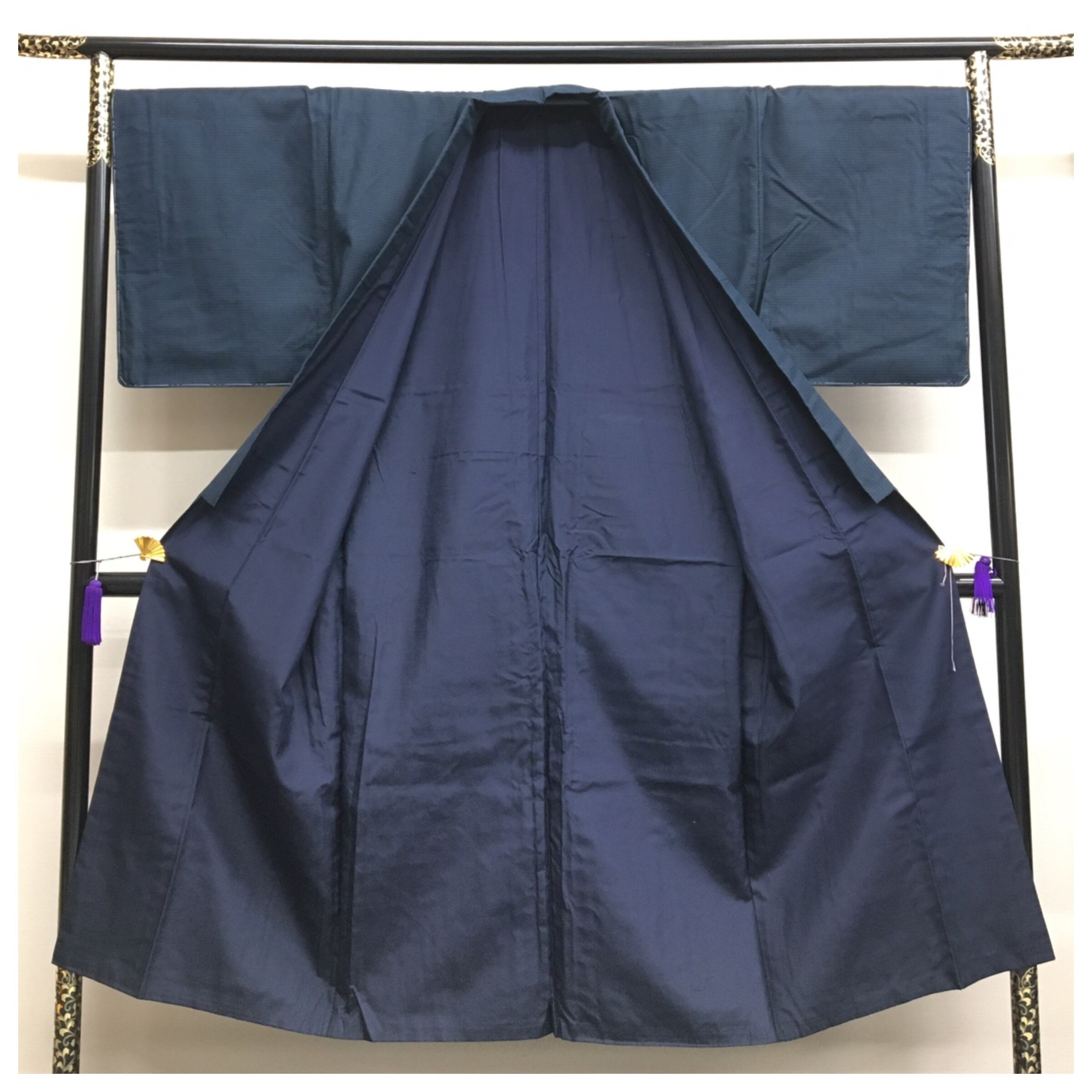 美品 正絹 大サイズ 男物 濃紺 紬 長着 袷 身丈143 裄70.5 中古品 です。