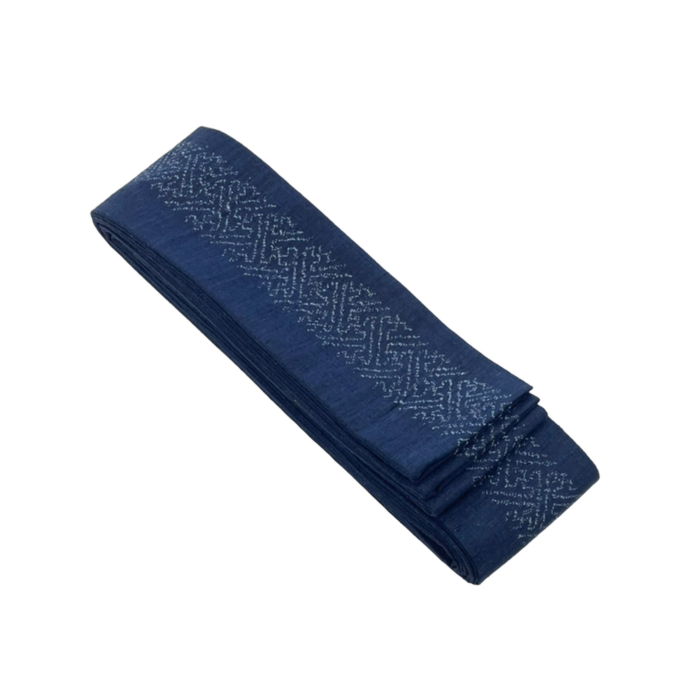 美品 正絹 角帯 個性派 全通柄 紺 紬 男物 長さ420 巾10.5 です。