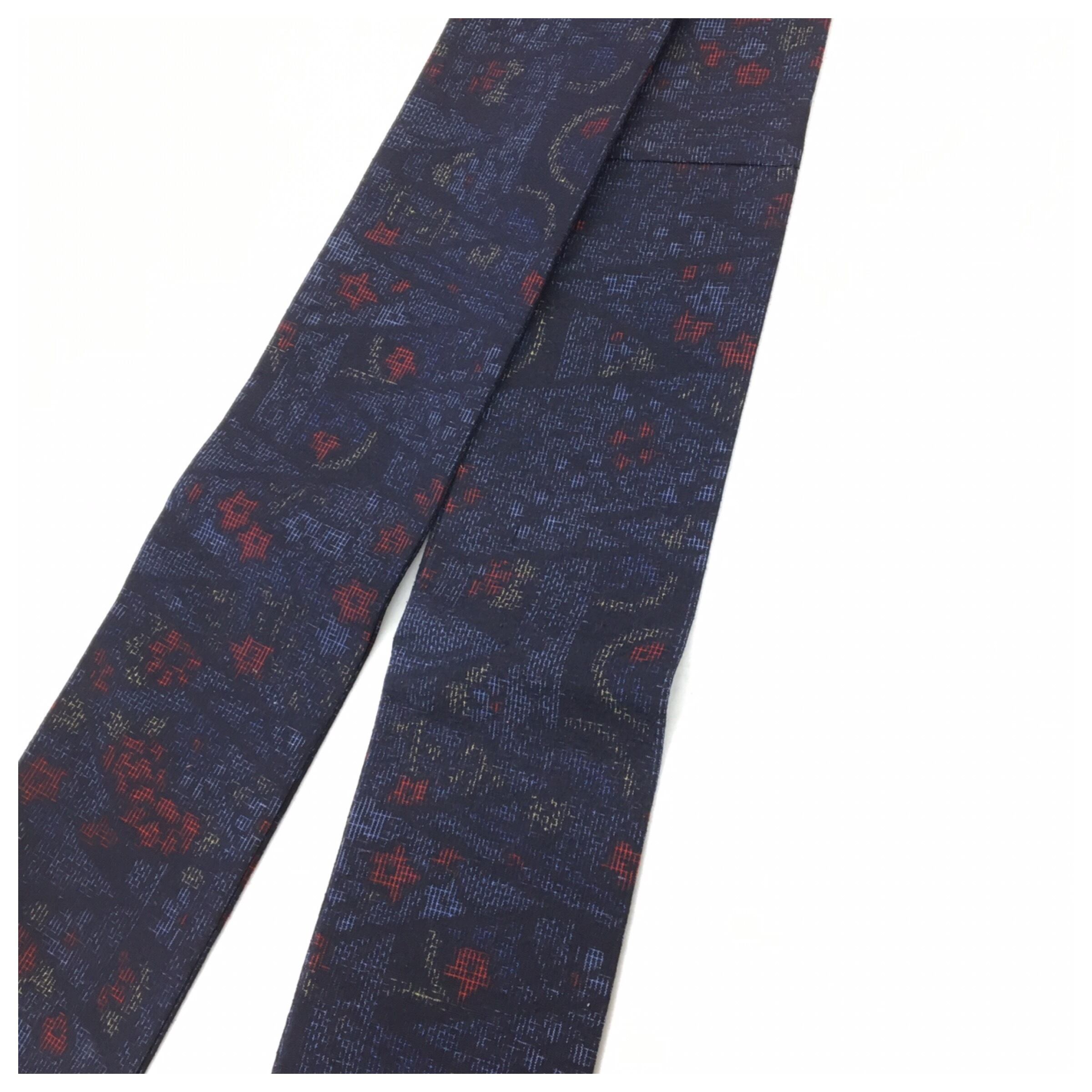 美品 正絹 角帯 個性派 全通柄 紺 紬 模様 男物 長さ440 巾10.5 です。