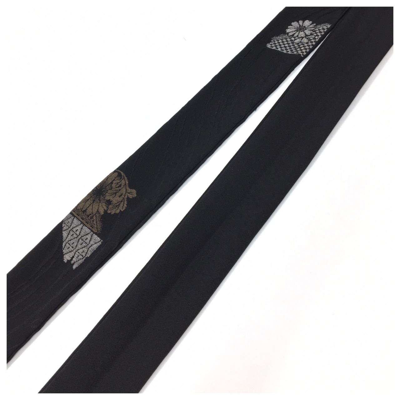 美品 正絹 三十仮紐 黒 柄違い お召 和装 小物 長さ210cm 巾7.5cm です。