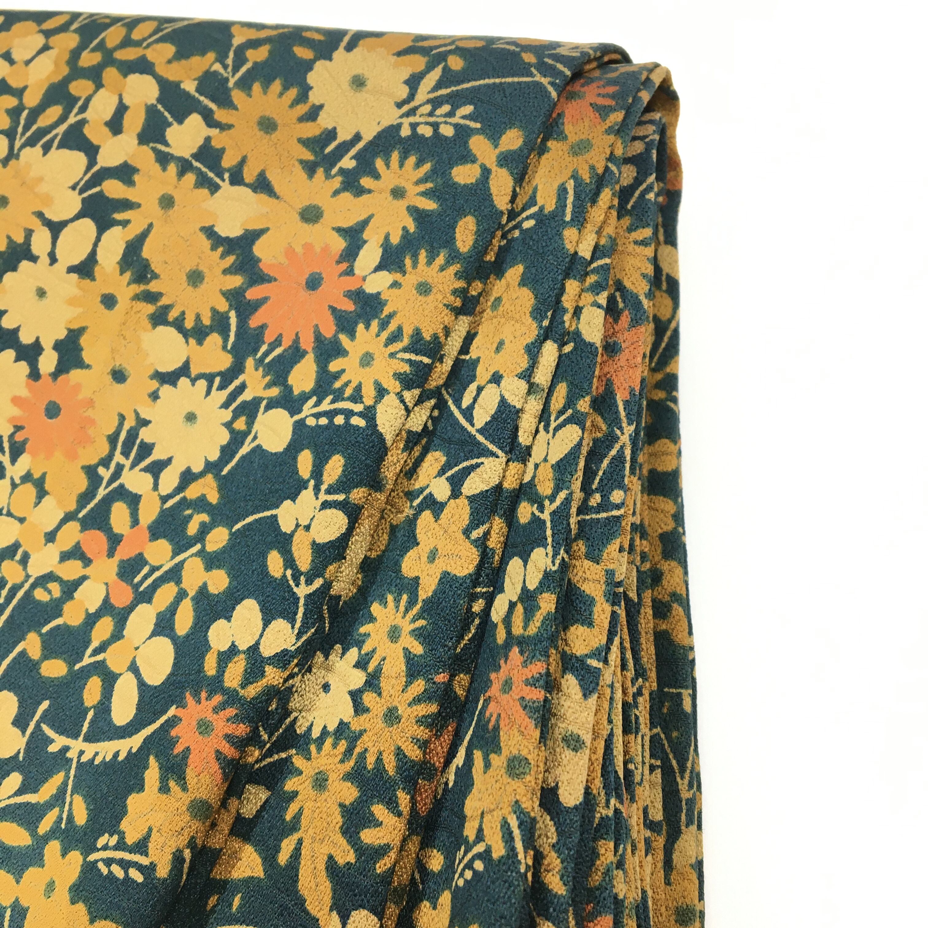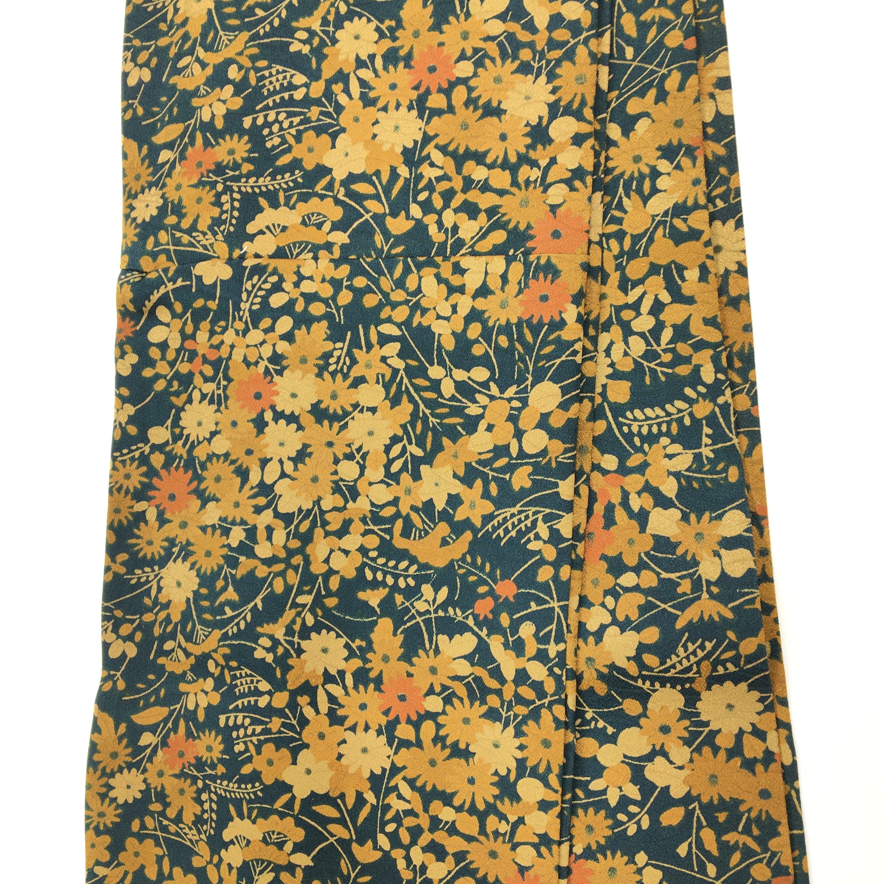 美品正絹 兵児帯 小花模様 深緑 全通柄 長尺420 幅17 中古品です。