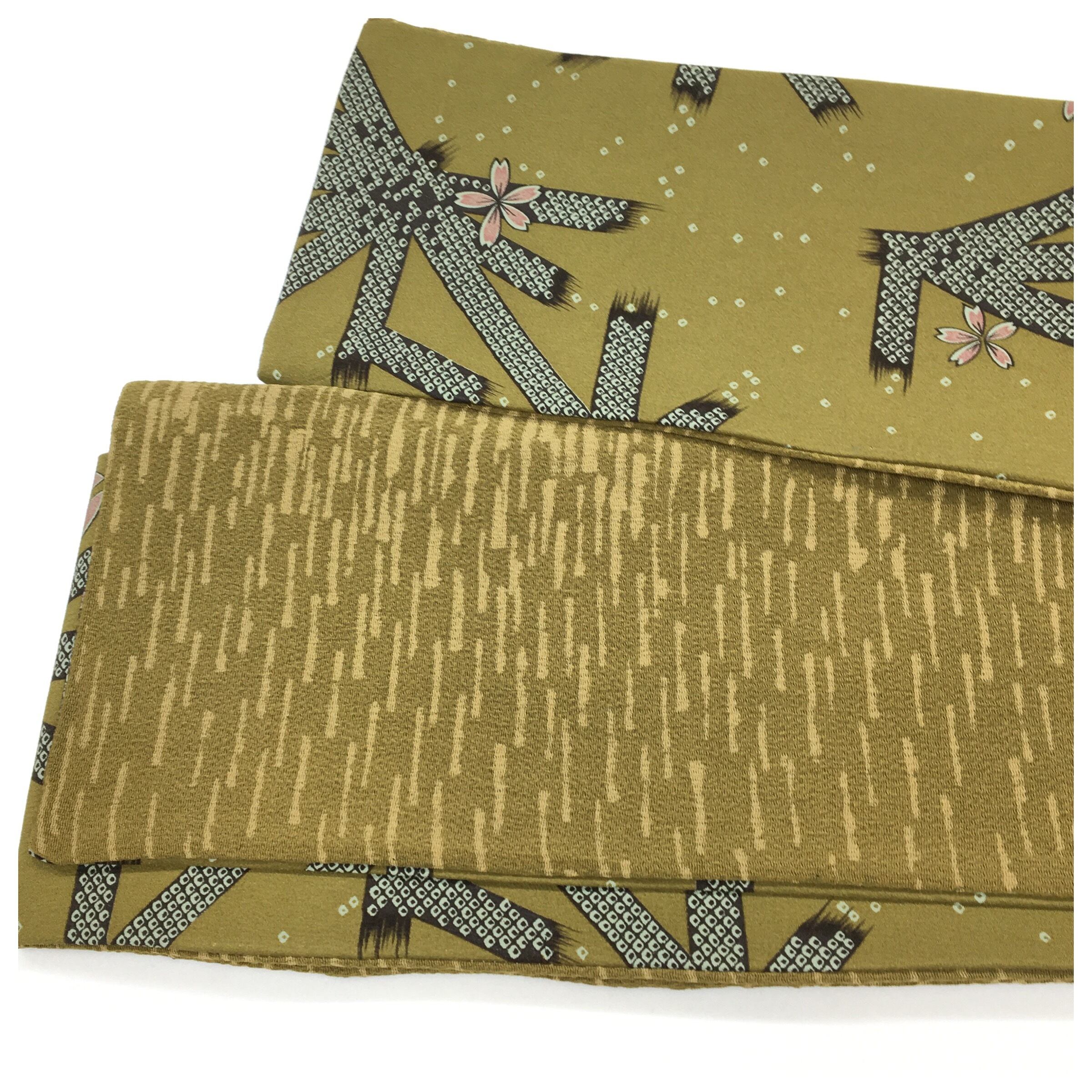 正絹 半幅帯 麻の葉x縮緬 黄土色 長さ392 幅15 中古品 です。