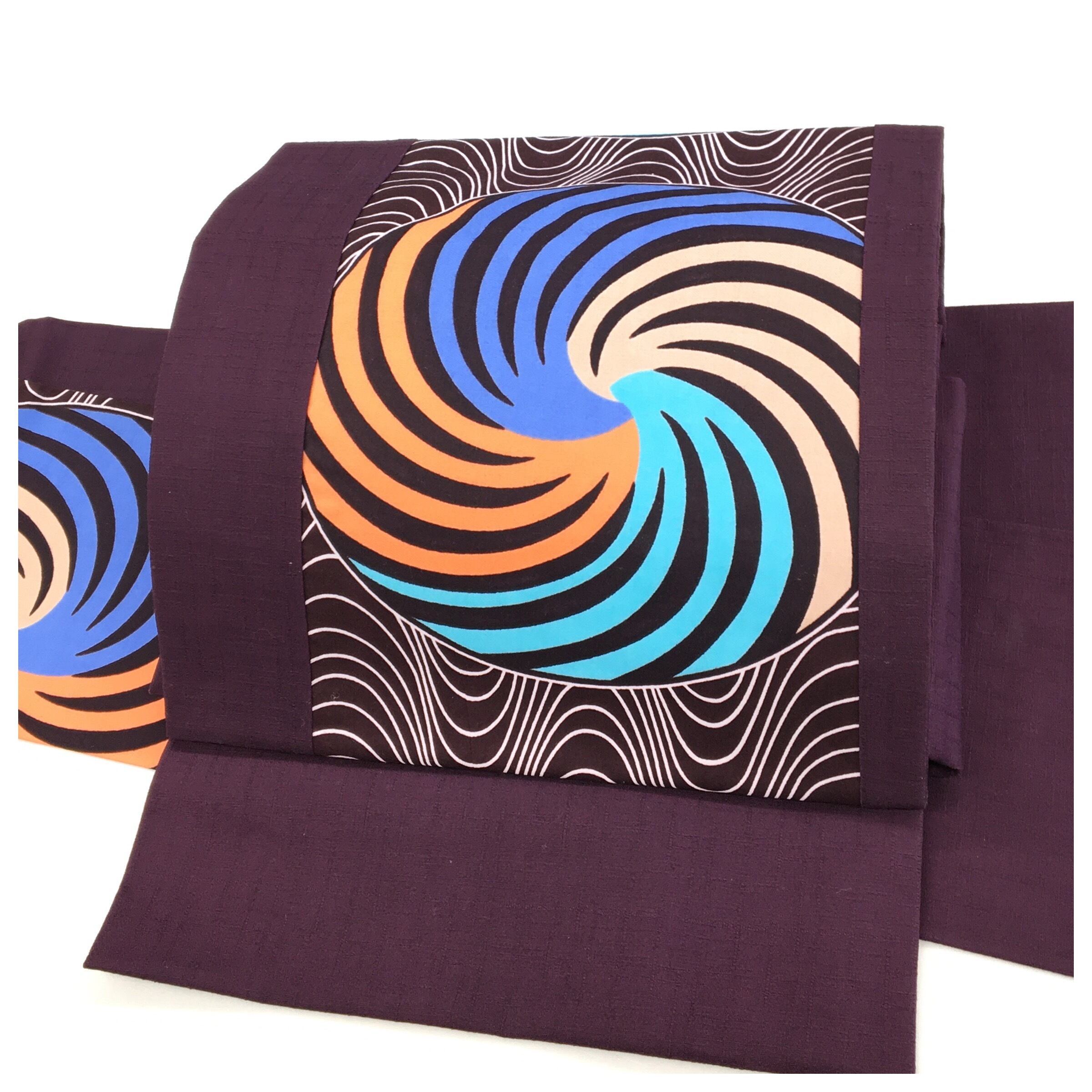 美品 お洒落 簡単装着 二部式 アフリカ布 紫 作り帯 綿 コットン ファブリック帯 です。
